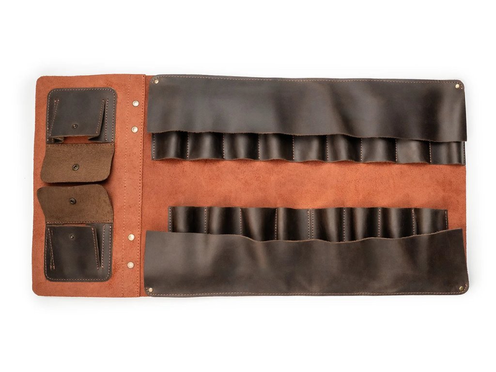 Geantă din piele de scule, 17 compartimente pentru depozitare și 2 buzunare, cu fermoar. Potrivită pentru meșteșugari, bricoleri sau sculptori.