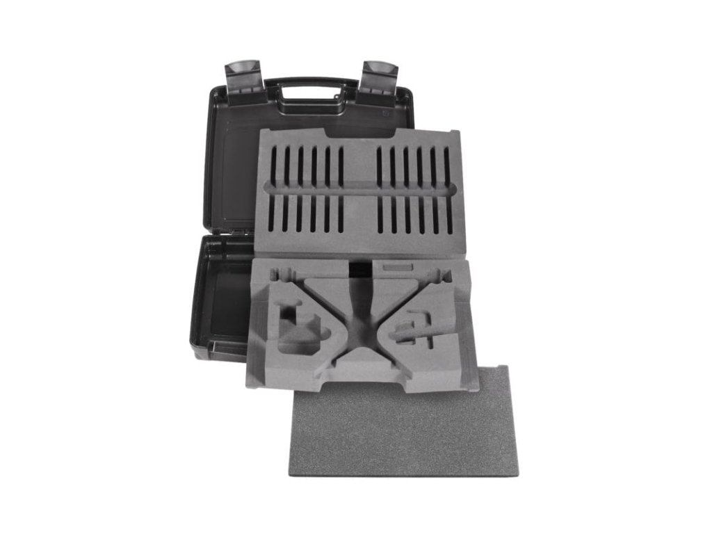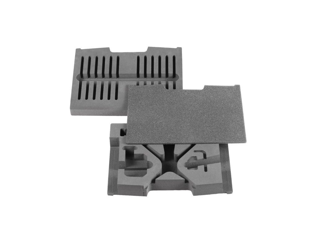 Interior din spumă foarte rezistent pentru geanta setului KMFS Rivalr. Setul include 3 părți: partea inferioară cu inferioară cu suprafață autoadezivă pentru kitul KMFS River include suporturi pentru pietre de ascuțit, clemă de masă, cheie Allen și instrument de măsurare a unghiurilor; partea superioară cu suprafață autoadezivă include locașuri pentru pietrele setului KMFS Rival 2 x 5 poziții; căptușeală din spumă..