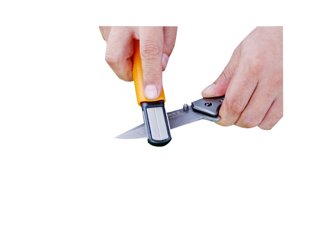 Ascuțitor simplu pentru cuțite de buzunar cu mai multe funcții. Ascute cuțite, foarfece, unelte de grădină și cârlige pentru pescuit.