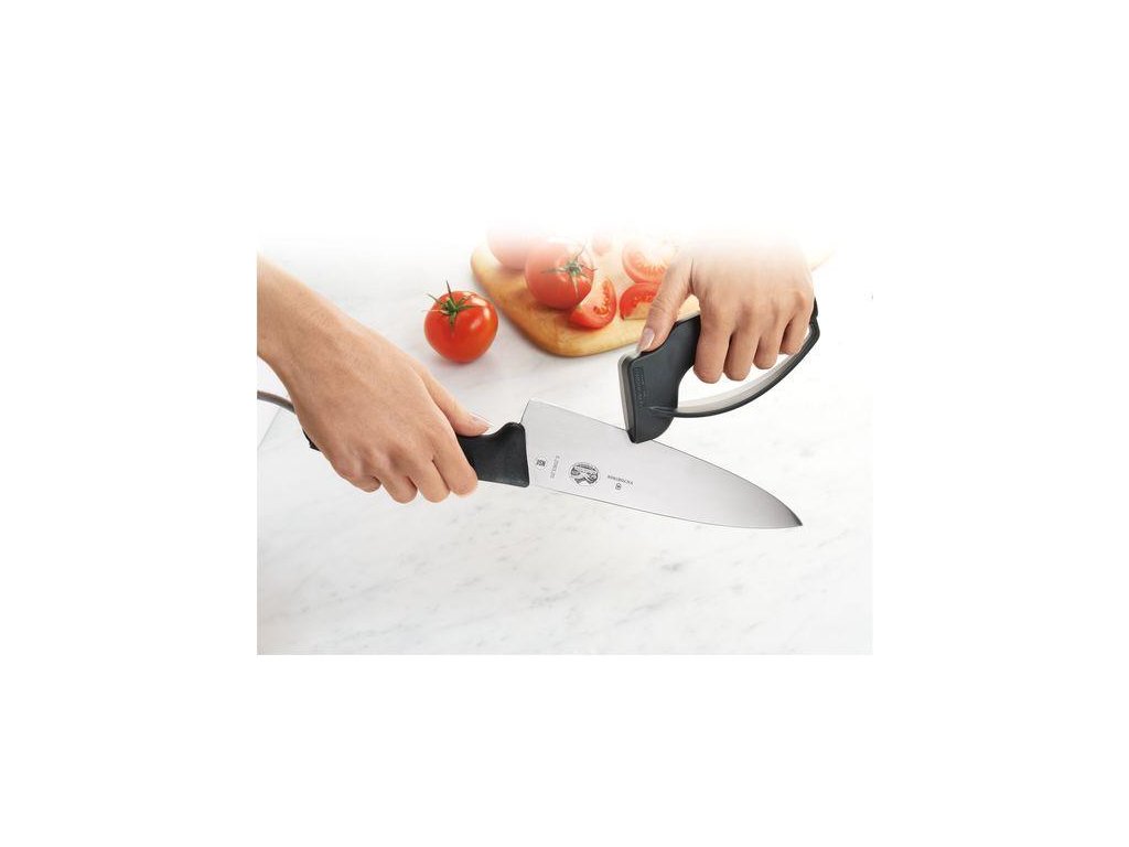 Ascuțitor elvețian de cuțite pentru bucătărie Victorinox cu o formă ergonomică practică și durată lungă de viață. Cu ascuțitorul ascuțiți foarte ușor fiecare cuțit din sertarul dvs. Manevrare foarte ușoară și sigură. Mecanismul de ascuțire constă în plăci în formă de V din carbură metalicp, care au fost poziționate la un unghi optim. Ascuțitorul este fabricat din poliamidă solidă și vă puteți baza pe el pentru mulți ani.