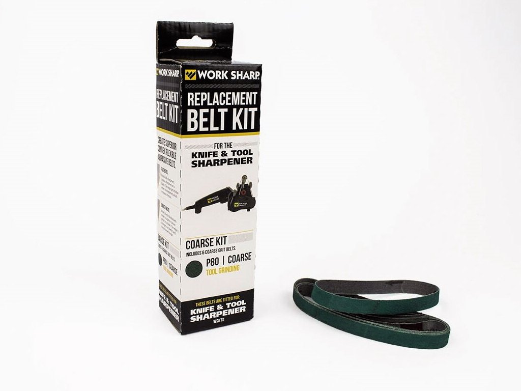 Curele de ascuțit pentru ascuțitorul electric de cuțite Work Sharp Knife & Tool Sharpener Mk.2 (cod WSKTS2). Include șase curele de ascuțit de șlefuit cu granulație 80. Acestea au o granulație foarte grosieră, fiind potrivite pentru ascuțirea cuțitelor foarte tocite și pentru repararea oricăror deteriorări ale lamei. Dimensiunile unei curele i sunt de 12,7 x 305 mm.