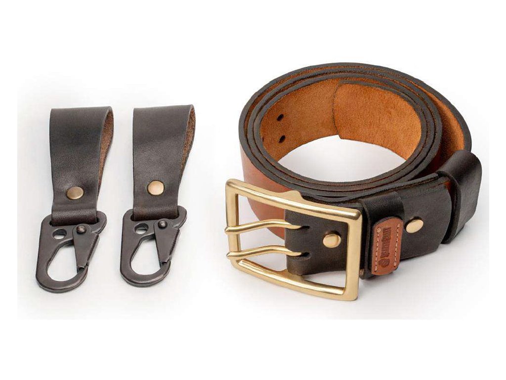 Curea lungime 137,5 cm, din piele naturală de vită, lățime 5 cm, cataramă dublă din alamă, două carabine pentru agățarea echipamentului dvs. pentru activități în aer liber.