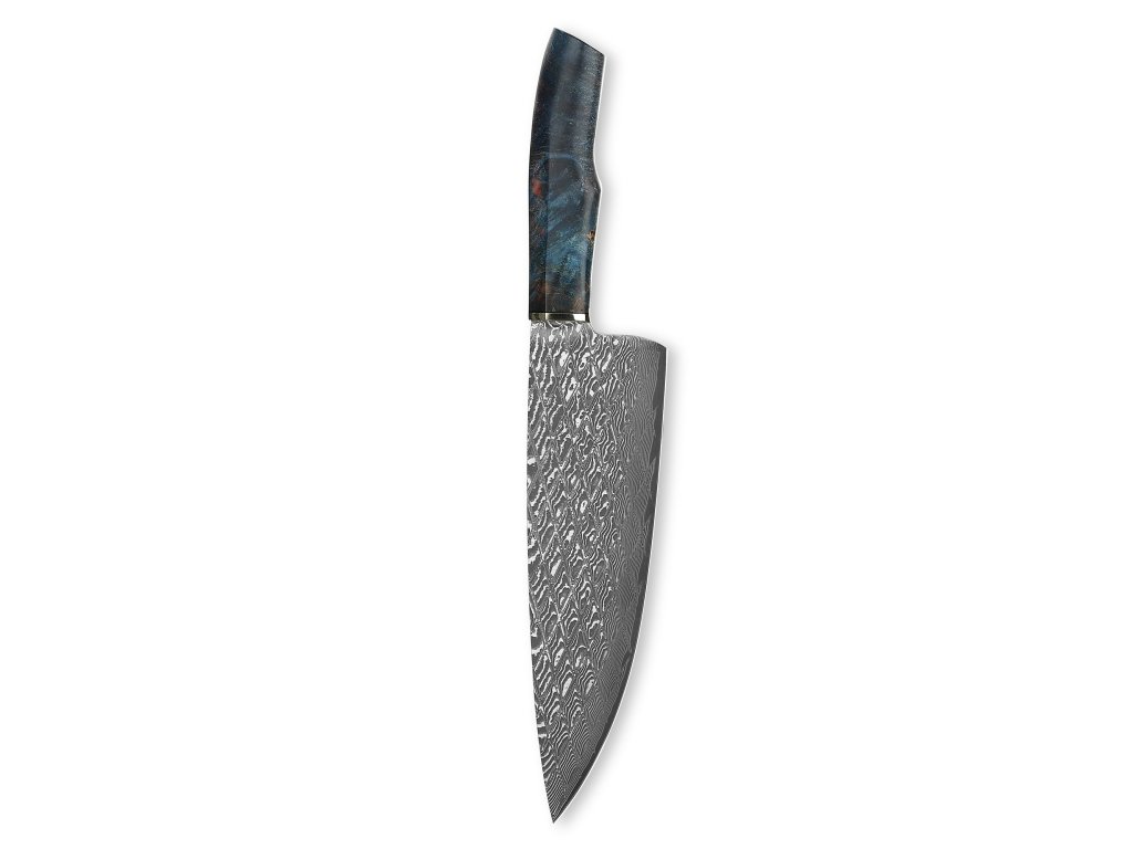 XIN Cutlery este un cuțit de bucătar cu lamă lată și curbată, datorită căreia pregătirea ingredientelor va fi mult mai rapidă. Cuțitul de bucătar este destinat în special pentru tăierea eficientă a legumelor, plantelor ierbacee, dar și a cărnii. Este cu siguranță unul dintre cele mai versatile tipuri de cuțite. O particularitate a acestui cuțit este lama de 20 cm din oțel damasc japonez (67 de straturi) cu miez din oțel inoxidabil VG-10. Cuțitul este ambalat într-o cutie elegantă.