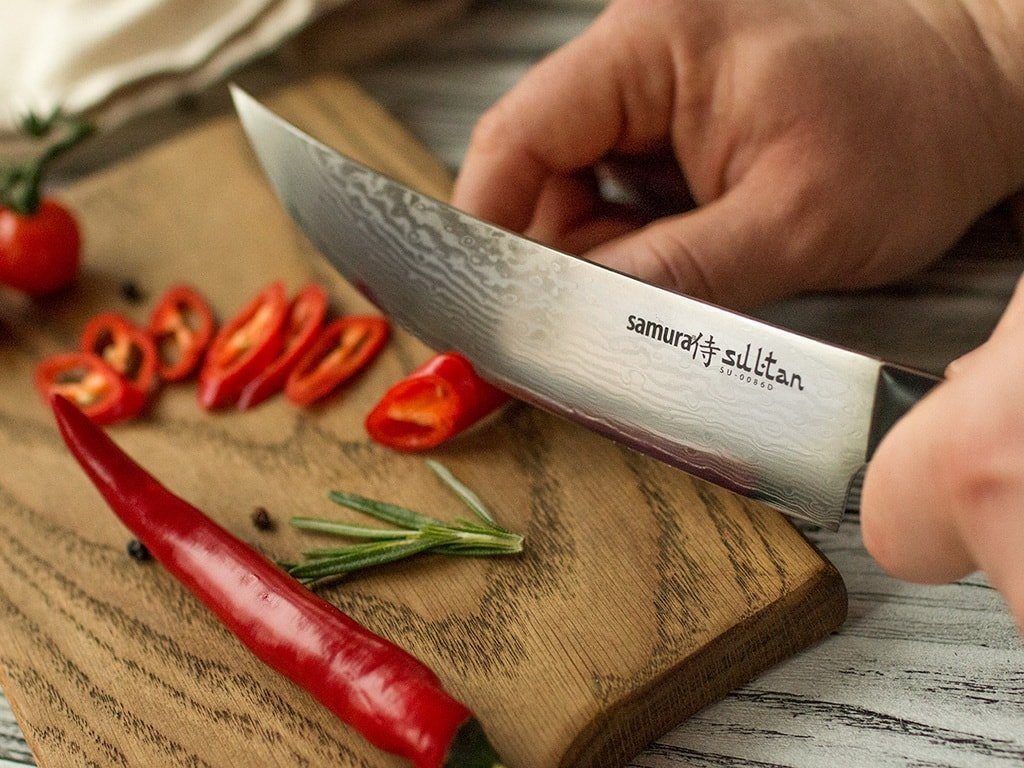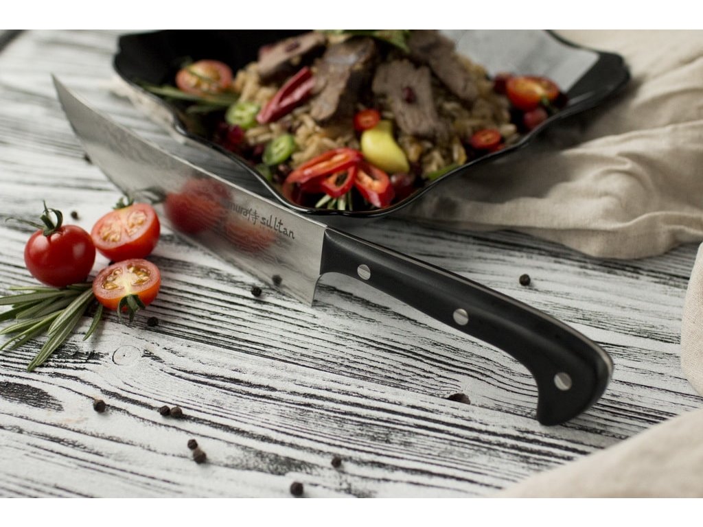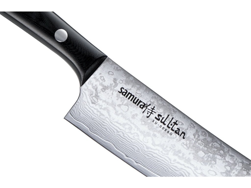 Cuțitele Samura din seria Sultan reprezintă tipuri de cuțite pentru bucătărie excepționale și foarte neobișnuite în țara noastră, inspirate de cuțitele orientale antice. Oferă o combinație între lama extrem de ascuțită din oțel de Damasc japonez (67 de straturi de oțel, duritate până la 61 HRC) și mânerul foarte rezistent din material compozit modern G10. Sunt livrate într-o cutie frumoasă din carton și plastic, fiind astfel potrivite și drept cadou.