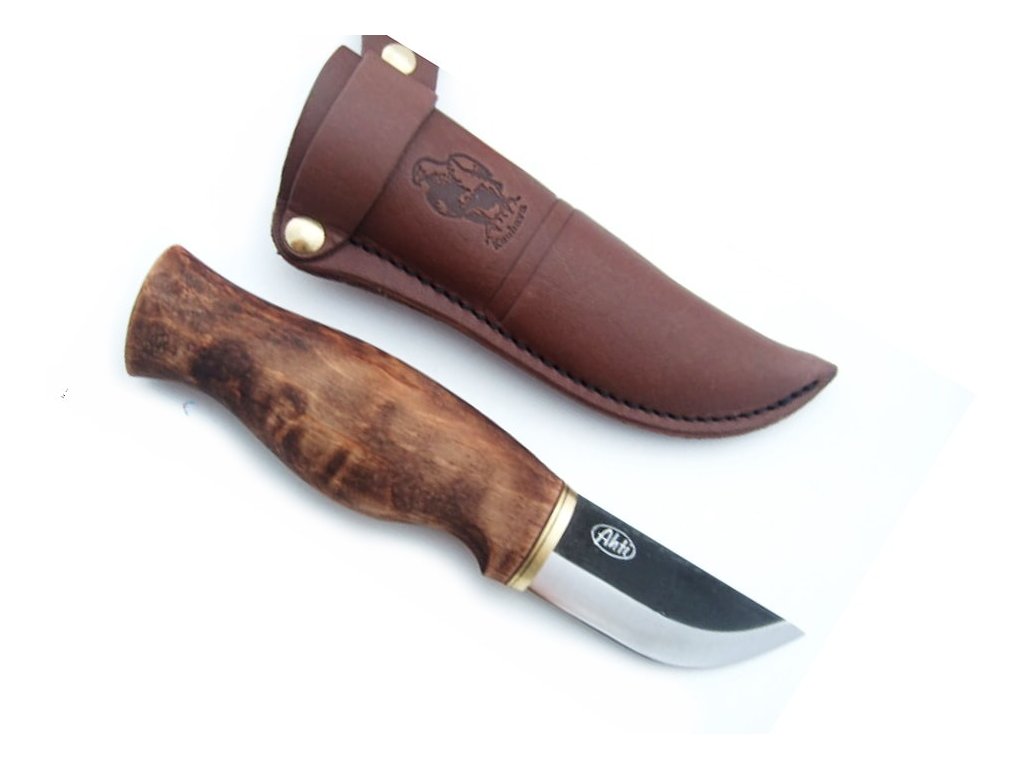 Cuțit nordic tradițional de la producătorul Ahti. Kaira este un cuțit multifuncțional mai mic pentru activități în aer liber, drumeții sau vânătoare. Mânerul din lemn de mesteacăn este tratat cu ulei de in și finisat cu un bolster din alamă. Lama de lungime 7,2 cm este fabricată din oțel carbon cu duritatea 58-59 HRC, de la producătorul Laurin Metalli. Cuțitul este livrat cu o teacă din piele de calitate care poate fi agățată la curea. Oțelul carbon rezistă bine la uzură și este ușor de ascuțit, dar este susceptibil la rugină (cuțitul trebuie curățat și uscat bine după utilizare, iar tăișul trebuie uns ocazional).