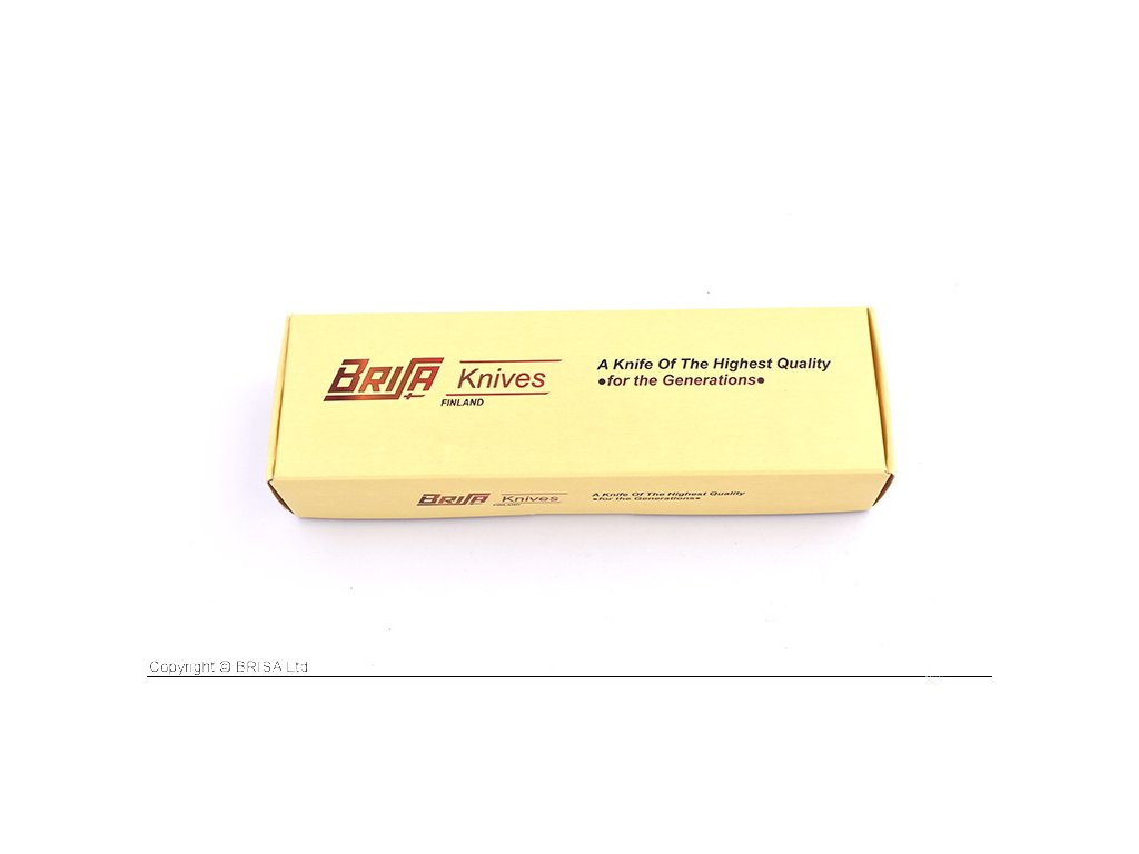 Brisa Bobtail este un cuțit mic cu lamă fixă, conceput pentru drumeții, călătorii, utilizare zilnică sau procesarea capturilor mici. Lama are o lungime de 8 cm, este fabricată din oțel inoxidabil Sandvik 12C27, cu tăiș scandi grind. Mâner din micarta. Teaca este fabricată din piele de bovină din spania de calitate superioară, cu cusături foarte rezistente și oferă diverse opțiuni de agățare.