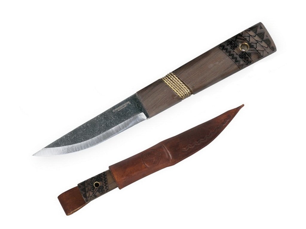 Condor Indigenous Puukko este un cuțit universal, de dimensiuni medii, pentru activități în aer liber, inspirat de cuțitele nordice. Lamai din oțel cu conținut ridicat de carbon 1095 este de lungime 9,9 cm, cu un tăiș tip scandi grind. Mânerul din lemn de nuc decorat oferă cuțitului un aspect foarte elegant și natural. Teacă de calitate din piele cu clemă pentru agățare.