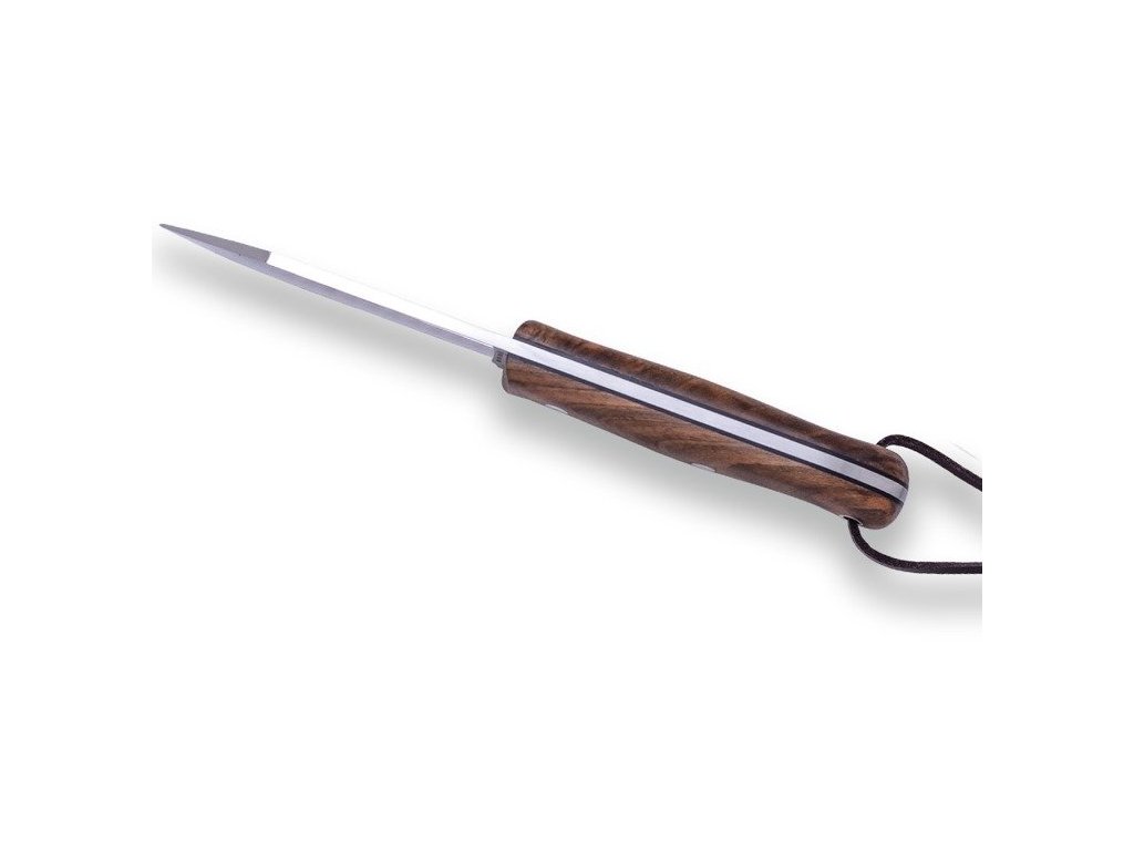 Joker Canadiense este un cuțit de tip nessmuk cu design foarte interesant. Canadiense este un cuțit pentru activități în aer liber de dimensiuni medii, cu o construcție full tang (realizat dintr-o singură bucată de oțel). Este un cuțit universal pentru pădure care poate face față tuturor activităților. Construcția full tang îi asigură rezistența și fiabilitatea. Lama fabricată din oțel inoxidabil Sandvik 14C28N, cu finisaj mat, are o lungime de 10,5 cm și un tăiș tip flat grind. Mâner realizat din lemn de nuc.