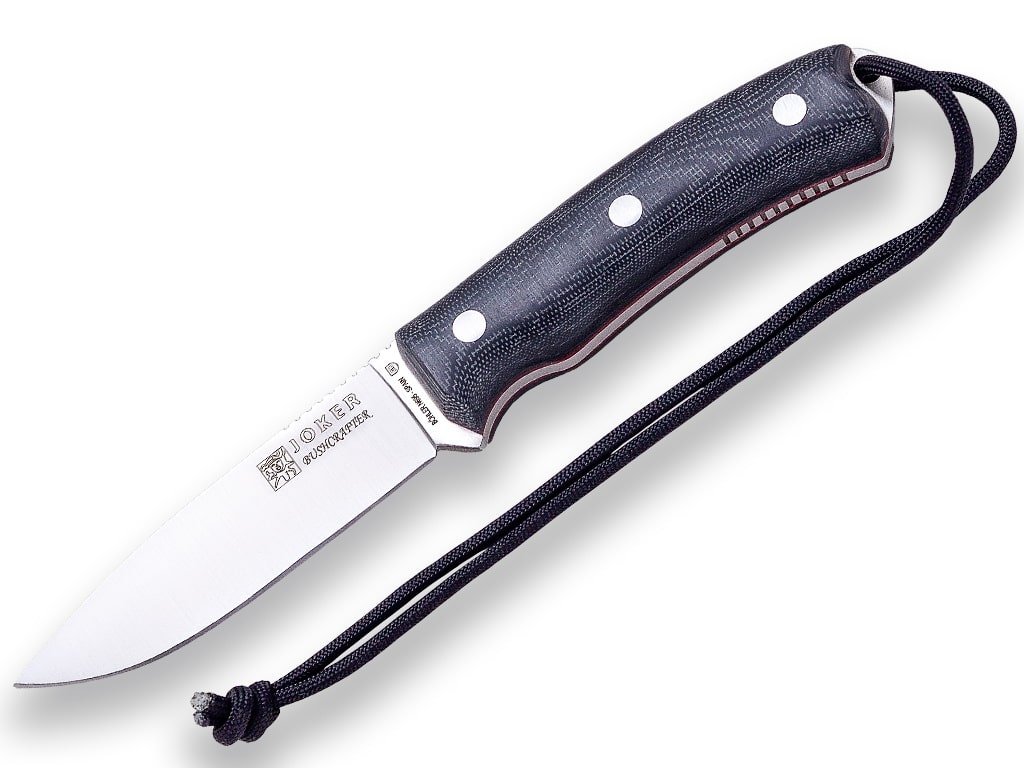 Joker Bushcrafter este un produs nou al producătorului spaniol Joker din anul 2019. Bushcrafter este un cuțit pentru activități în aer liber de dimensiuni medii, cu o construcție full tang (realizat dintr-o singură bucată de oțel). Este un cuțit universal pentru pădure care poate face față tuturor activităților. Cuțitul nu are detalii inutile totul este adaptat pentru funcționalitate maximă. Construcția full tang îi asigură rezistența și fiabilitatea. Lama din oțel inoxidabil Böhler N695, cu finisaj mat, are o lungime de 10,5 cm și un tăiș tip flat grind. Mâner realizat din micarta - un material compozit modern, foarte durabil și plăcut la atingere. Cuțitul este livrat cu o teacă din piele de calitate, cu posibilitatea prinderii la curea.
