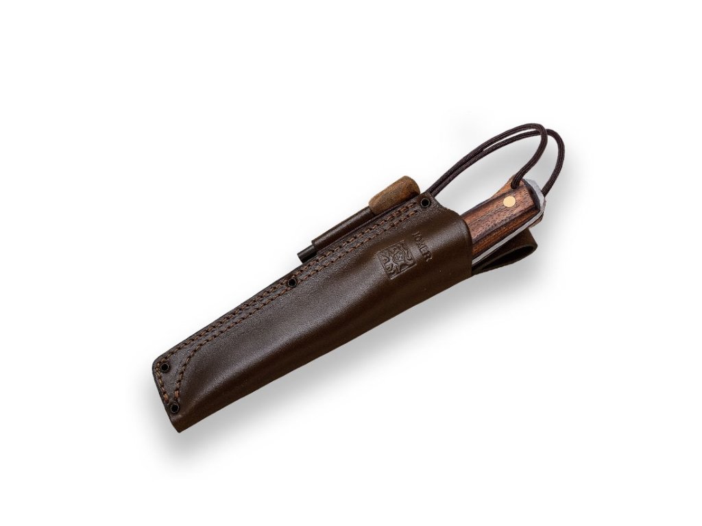Cuțitul este livrat cu o teacă din piele de bună calitate, care poate fi atașată la curea și cu un kit pentru aprinderea focului. Cuțitul a fost proiectat de J. Sabater.
