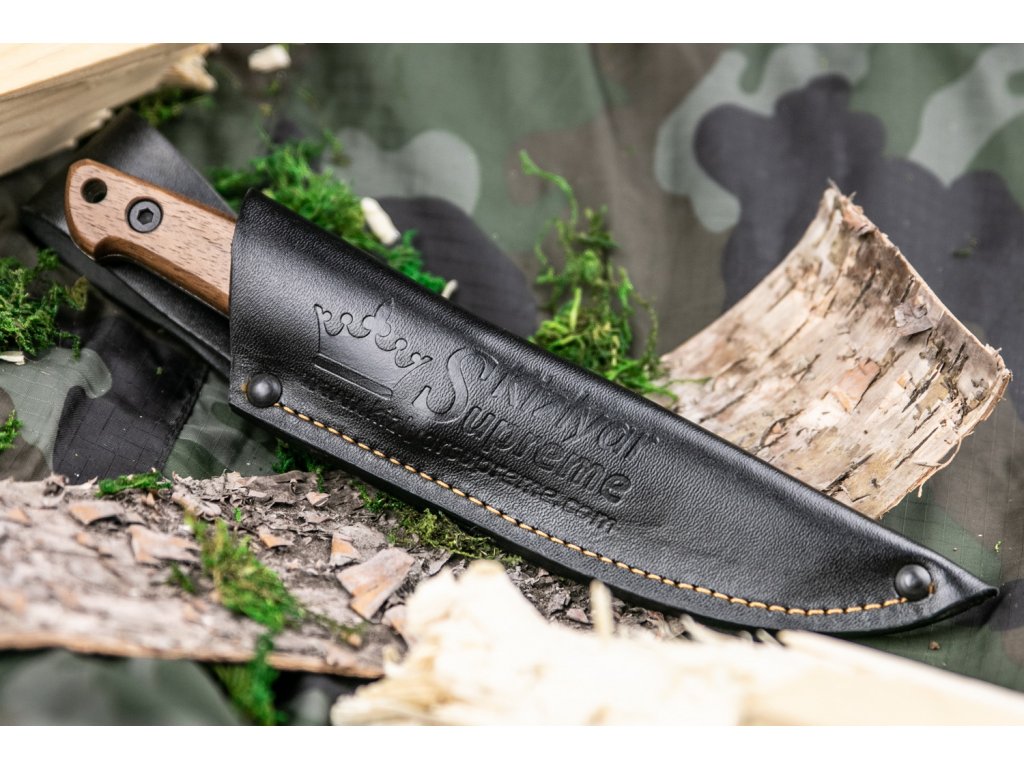Nikki este un cuțit pentru activități în aer liber de dimensiuni mai mici. Construcția full tang îi asigură rezistența și fiabilitatea. Lama este fabricată din oțel inoxidabil AUS-8, duritate 57-59 HRC, cu finisaj stonewash și tăiș tip hollow grind. Mâner fabricat din lemn de nuc caucazian. Cuțitul este livrat cu teacă din piele.