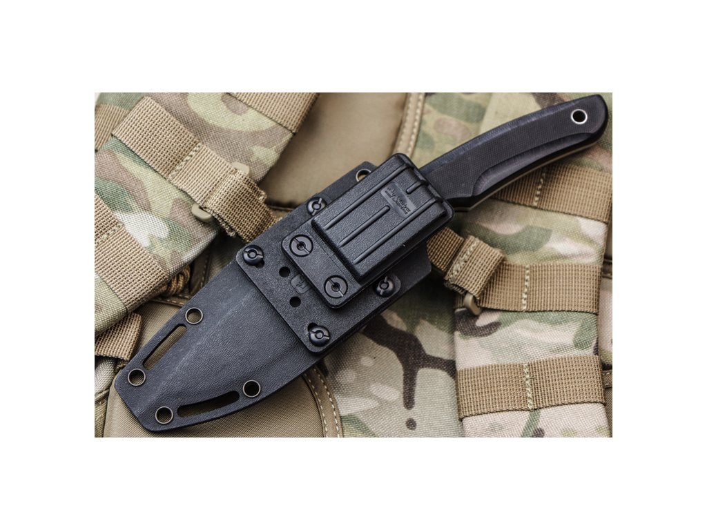 Cuțit mare pentru activități în aer liber, cu o formă curbată, care amintește de cuțitele nepaleze khukri. Cuțitul are proprietăți excelente de tăiere, în special atunci când taie prin împingere. Construcția full tang îi asigură rezistența și fiabilitatea. Lamă fabricată din oțel pentru unelte Sleipner, duritate 60-62 HRC, cu finisaj fin stonewash. Mâner realizat din G10 - material compozit modern, foarte durabil și plăcut la atingere. Cuțitul este livrat cu o teacă din kydex.
