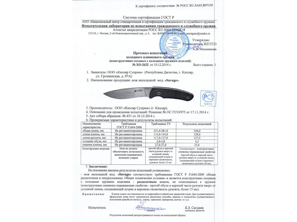 Cuțit Kizlyar Supreme Savage Sleipner SW