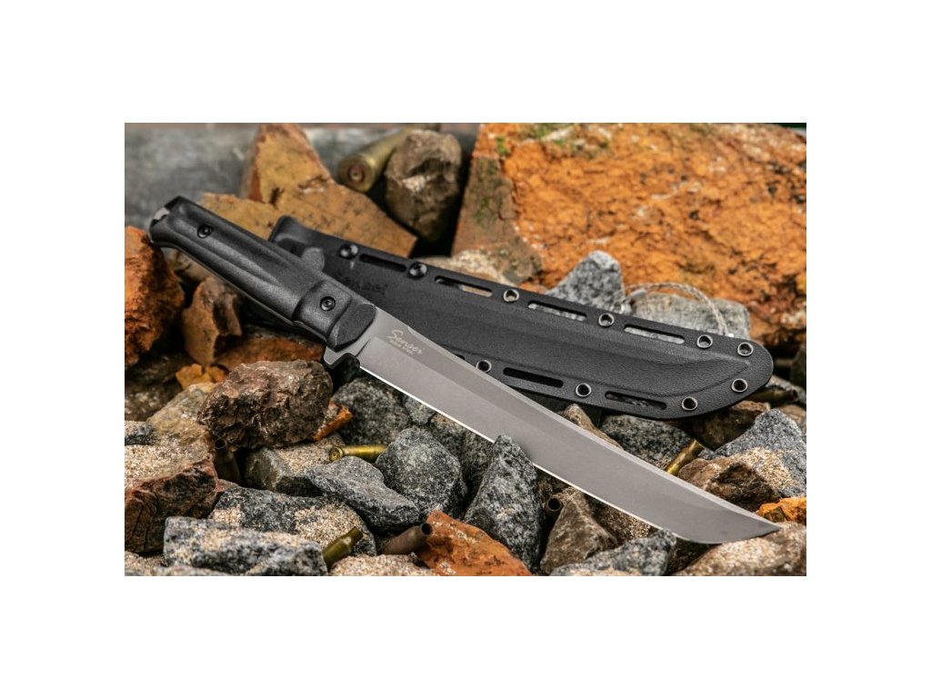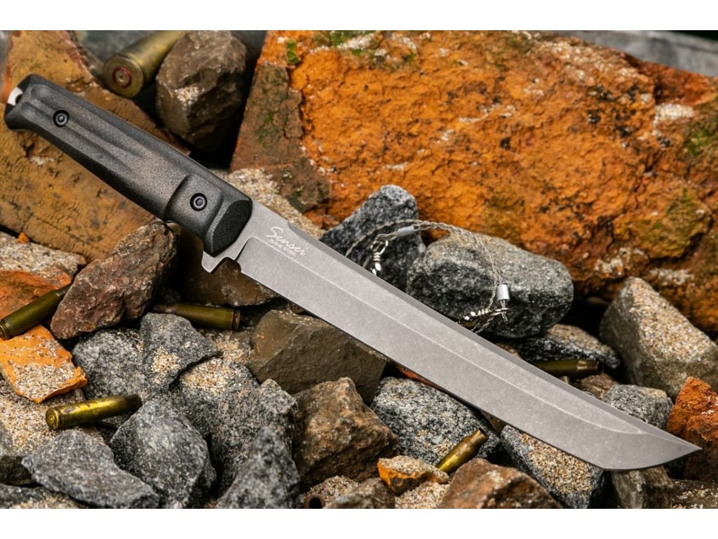 Sensei combină frumusețea cuțitelor orientale tradiționale cu designul și materialele moderne. Cuțitul inspiraț din designul săbiilor japoneze wakizashi are un aspect inconfundabil. Lama din oțel pentru unelte D2, duritate 60-62 HRC, cu finisaj TacWash are lungimea de 22 cm. Rezistența cuțitului este asigurată de o construcție full tang și o grosime a lamei de 4,6 mm. Mânerul este fabricat din două straturi - stratul inferior este din plastic ABS, care asigură rezistența mânerului, stratul superior al mânerului este realizat din Kraton, care este plăcut la atingere și, în același timp, foarte durabil. Cuțitul este livrat cu o teacă din plastic.