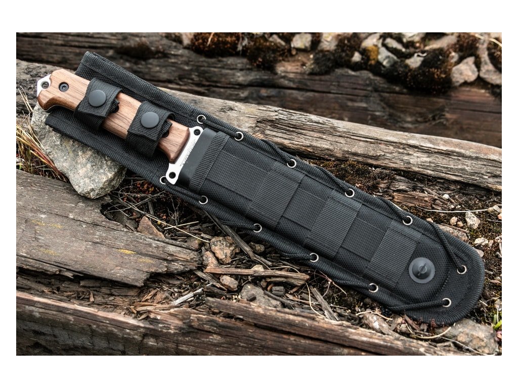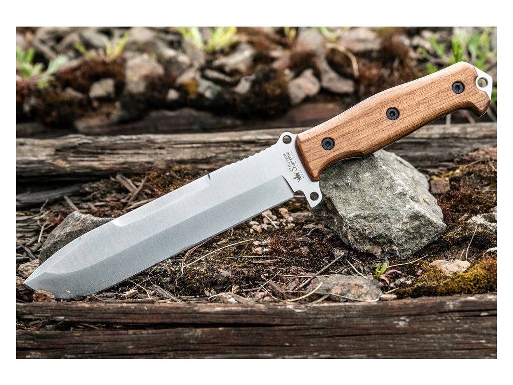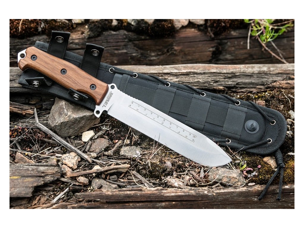 Survivalist X este un cuțit mare conceput pentru supraviețuire în sălbăticie. Construcția full tang îi asigură rezistența și fiabilitatea, iar datorită lamei masive poate face față lucrărilor dificile. Lama este fabricată din oțel inoxidabil AUS-8, duritate 57-59 HRC, cu un finisaj fin stonewash. Pe partea din spate a lamei există un tăiș fals. Mâner din lemn de nuc. Cuțitul este livrat cu o teacă moale din plastic.
