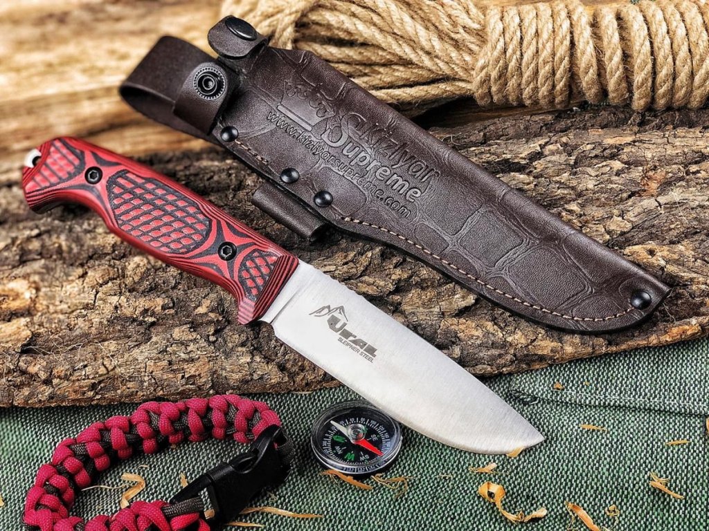 Ural este un cuțit solid pentru activități în aer liber, cu o construcție full tang (dintr-o singură bucată de oțel). A fost conceput pentru a face față chiar și celor mai dificile activități și situații. Lama fabricată din oțel pentru unelte Sleipner, duritate 60-62 HRC, cu finisaj mat are o tăiș tip convex grind și o grosime de 4,8 mm. Mâner realizat din G10 texturat - un material compozit modern, foarte durabil și plăcut la atingere. Cuțitul este livrat cu o teacă din piele.