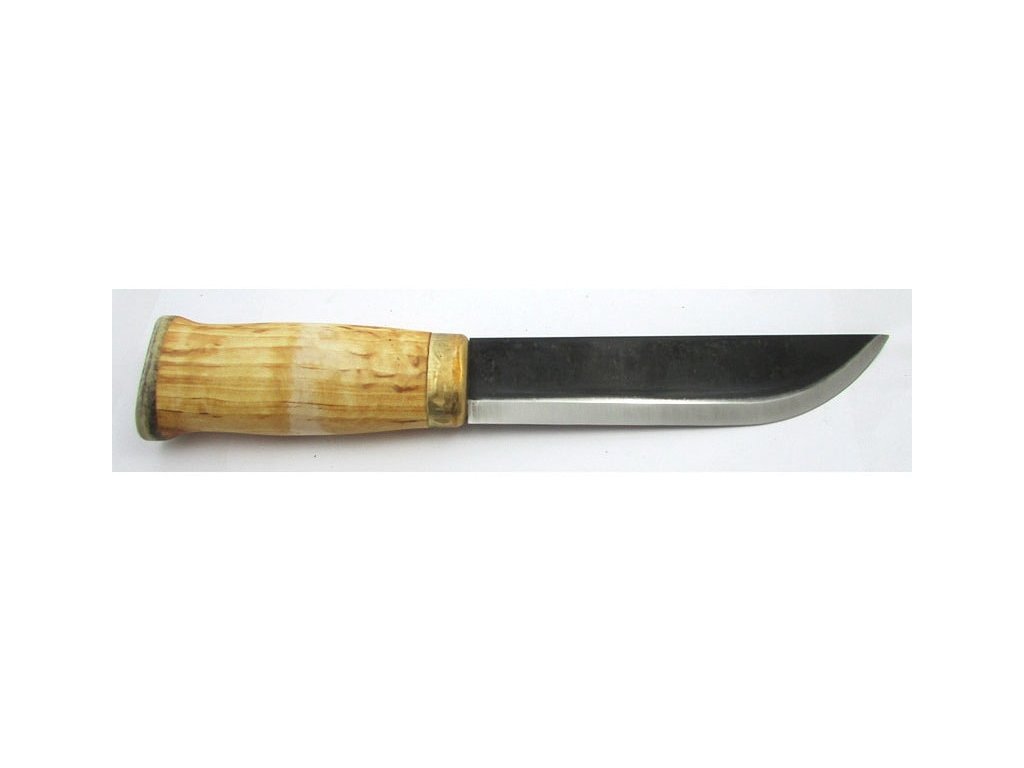 Cuțit nordic tradițional tip Leuku, de dimensiuni medii. Mânerul este realizat din lemn de mesteacăn, cu un bolster din alamă, finisat cu corn de cerb de ren. Lamă de lungime 17,5 cm, din oțel carbon. Cuțitul este livrat cu o teacă din piele de calitate. Oțelul carbon rezistă bine la uzură și este ușor de ascuțit, dar este mai predispus la rugină (cuțitul trebuie curățat și uscat bine după utilizare; de asemenea, este recomandabil să ungeți ocazional tăișul cu ulei). Leuku este o unealtă tradițională în Laponia, unde este folosit pentru toate activitățile obișnuite, de la activități ușoare cu lemnul, cum ar fi tăierea unor bucăți mai mici de lemn sau îndepărtarea scoarței, până la procesarea capturilor.