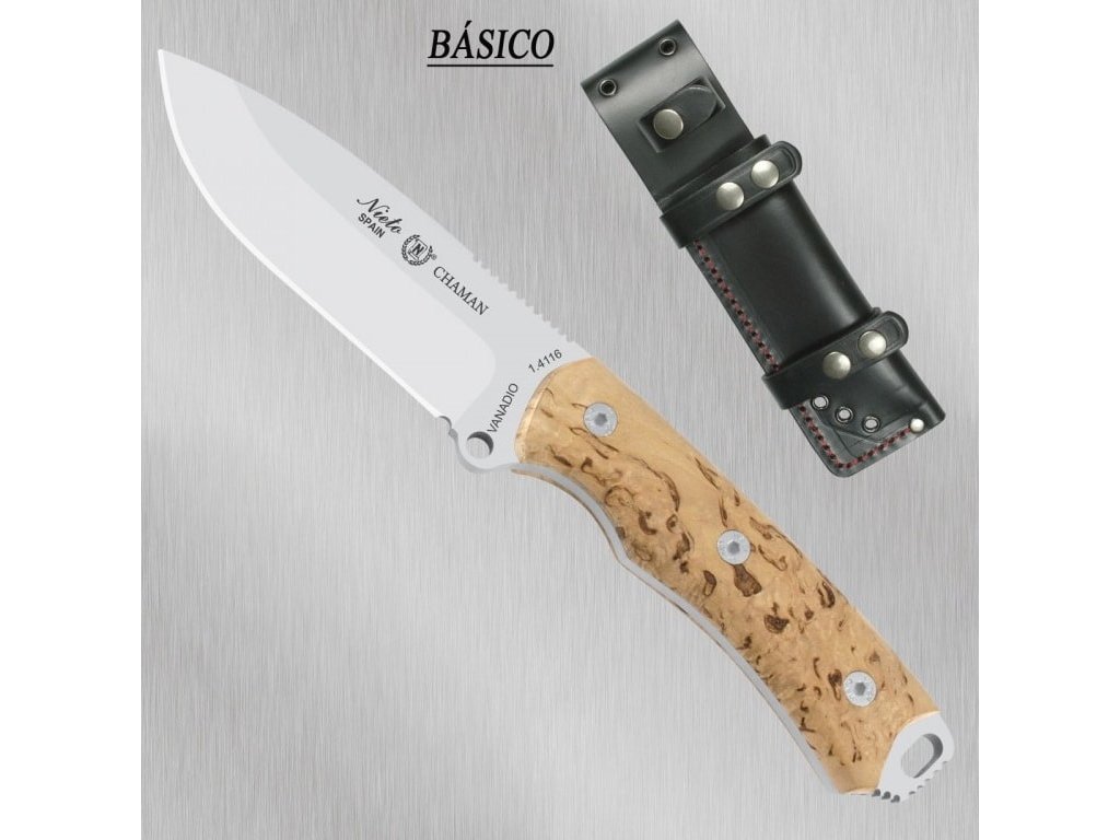 Chaman este un cuțit lansat în 2017 de Miguel Nieto. Un cuțit excelent, de dimensiuni medii, potrivit pentru activități în aer liber, vânâtoare sau drumeții. Construcția full tang îi garantează rezistența și fiabilitatea. Lama, cu lungimea de 11,5 cm, are un tăiș tip hollow grind și este fabricată din oțel german tip 1.4116. Mânerul este fabricat din lemn de măslin. Teacă din piele, neagră, foarte bine lucrată. Cuțitul este compatibil pentru utilizarea cu un kit pentru aprinderea focului.