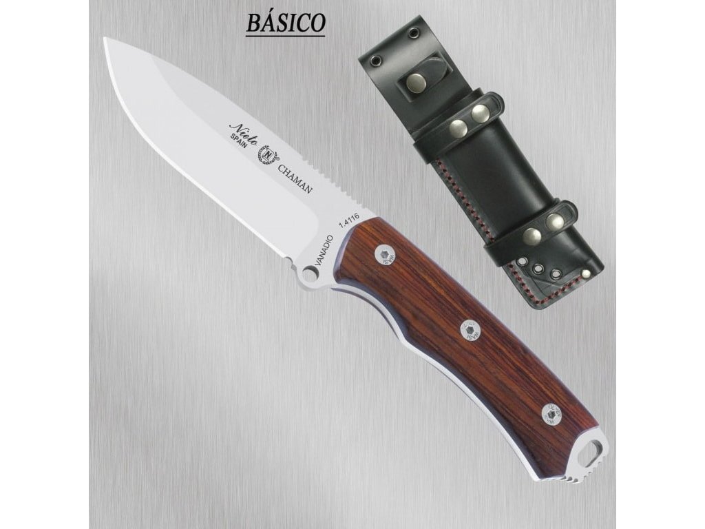 Chaman este un cuțit lansat în 2017 de Miguel Nieto. Un cuțit excelent, de dimensiuni medii, potrivit pentru activități în aer liber, vânâtoare sau drumeții. Construcția full tang îi garantează rezistența și fiabilitatea. Lama, cu lungimea de 11,5 cm, are un tăiș tip hollow grind și este fabricată din oțel german tip 1.4116. Mânerul este fabricat din lemn exotic de cocobolo. Teacă din piele, neagră, foarte bine lucrată. Cuțitul este compatibil pentru utilizarea cu un kit pentru aprinderea focului.