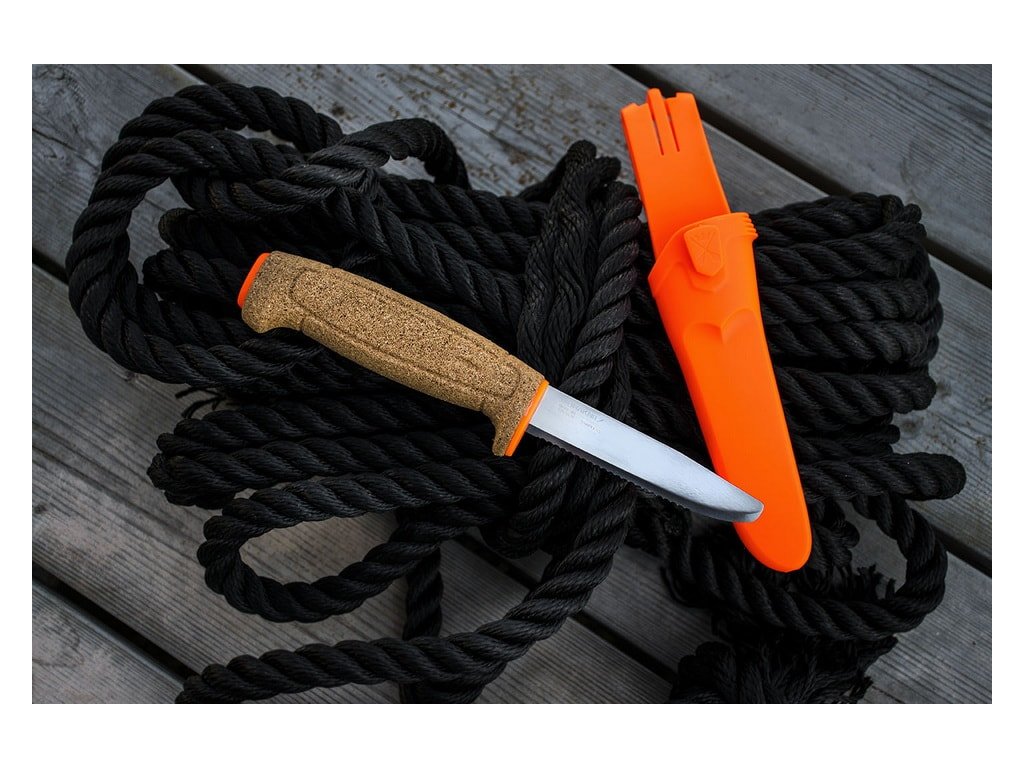 Cuțit flotant special realizat pentru a fi utilizat pe apă. Va fi folosit în special de pescari, canotori, și oricine se deplasează pe apă. Lama este fabricată din oțel inoxidabil Sandvik 12C27, duritate 57-58 HRC, parțial zimțată. Mânerul din plută este extrem de ușor și plăcut de cald la atingere. Teaca din plastic se atașează cu ușurință la curea, fără a fi nevoie să o desfaceți. Greutatea lamei este de numai 49 g, greutatea cu teaca este de 82 g. Cuțitele Morakniv sunt fabricate în Suedia.
