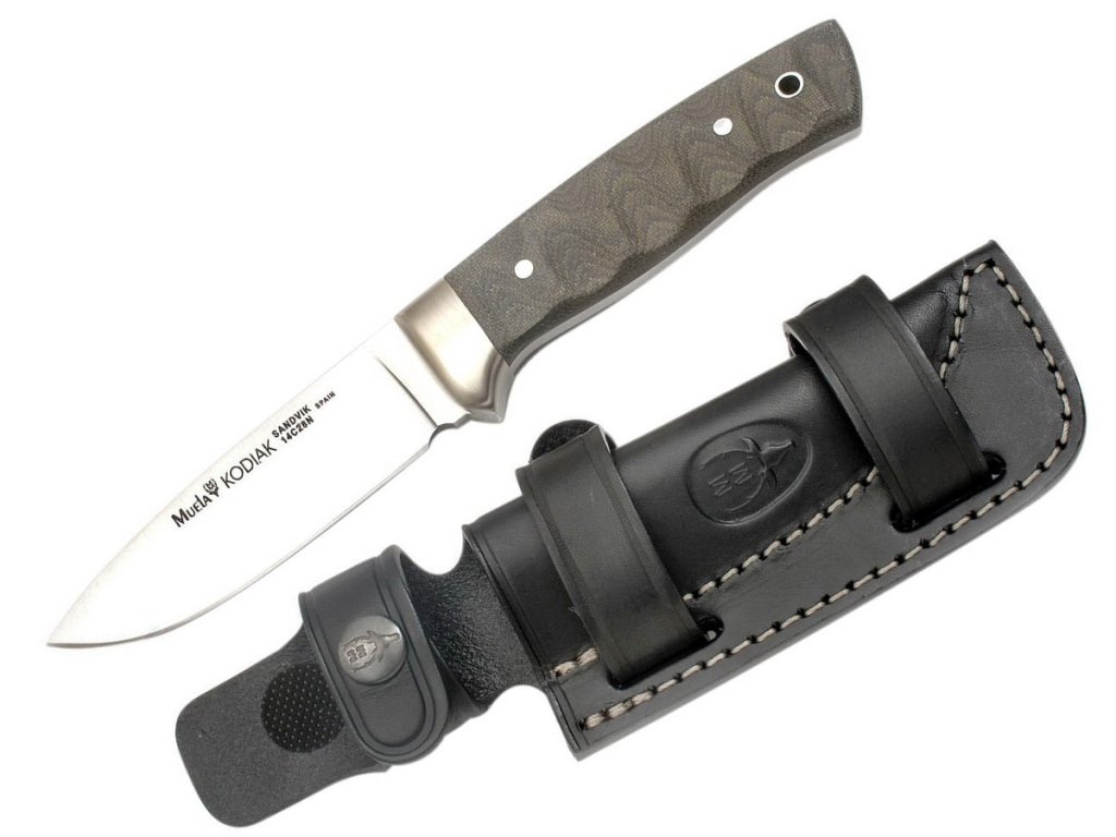 Cuțit excelent cu design elegant de la producătorul spaniol Muela, potrivit pentru vânătoare și activități în aer liber. Cuțitul este fabricat dintr-o singură bucată din oțel inoxidabil Sandvik 14C28N de bună calitate (full tang). Acest lucru îl face foarte durabil și rezistent și vă puteți baza pe el chiar și în condiții dificile. Mâner din micarta, cu orificiu pentru șnur. Cuțitul este livrat cu o teacă din piele.