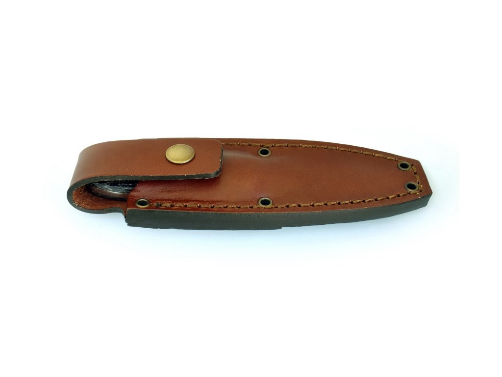 Nordic Knife Design Lizard este un cuțit cu lamă fixă, mai mic, conceput pentru drumeții, călătorii, utilizare zilnică sau procesarea capturilor mici. Lama are o lungime de 7,5 cm, este fabricată din oțel inoxidabil Sandvik 14C27 cu tăiș tip scandi grind. Mâner din micarta. Teacă din piele naturală tăbăcită din Spania.