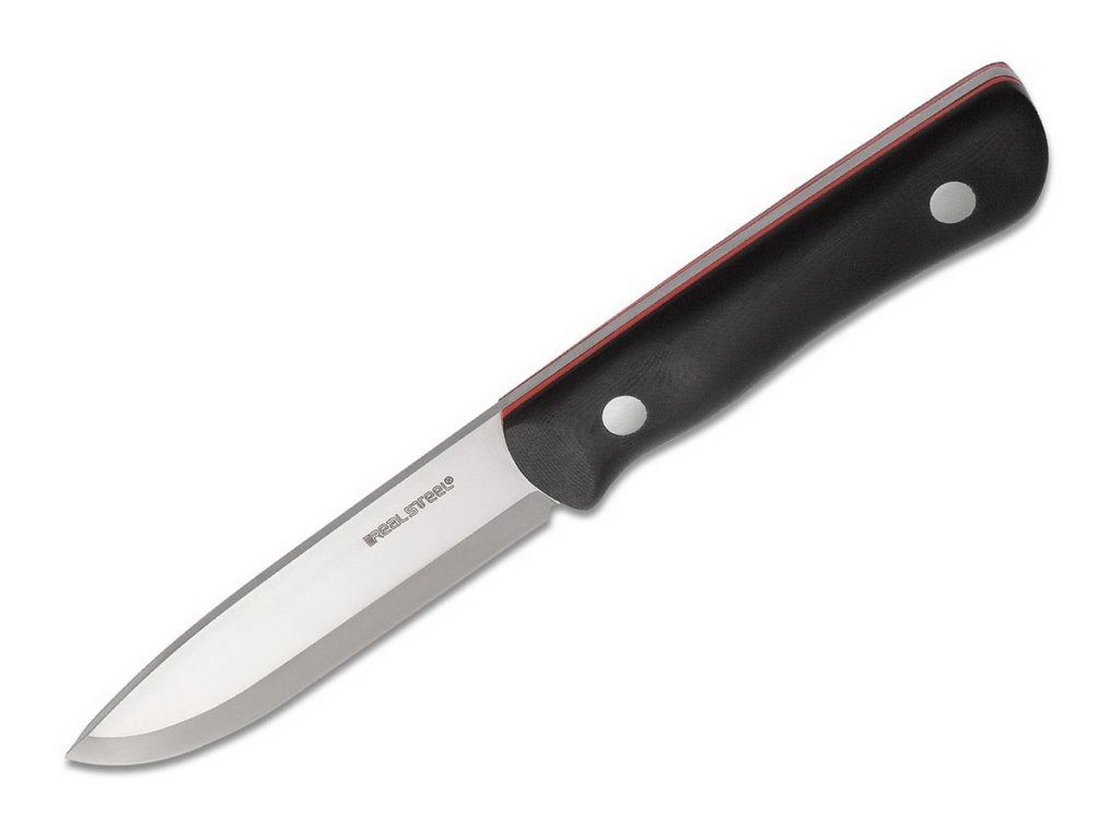 Real Steel Bushcraft III este un cuțit universal cu lama fixă, de dimensiuni medii, cu o construcție full tang. Datorită acestui fapt, este foarte util în munca de zi cu zi și în natură. Lama are o lungime de 10,5 cm, din oțel carbon D2, cu tăiș tip scandi. Mâner din G10 de culoare neagră. Teacă din Kydex.