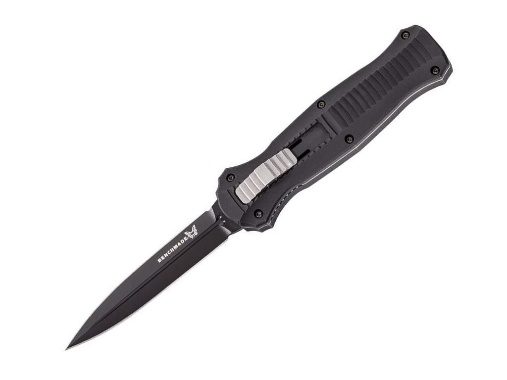 Benchmade Infidel este un cuțit OTF popular , cu un buton glisant pe partea frontală a mânerului. Lama din oțel pentru unelte D2 (duritate 60-62 HRC), are lungimea de 9,9 cm, cu finisaj negru BK1® și un tăiș flat grind. BK1 este un strat mat negru care oferă o protecție excelentă împotriva coroziunii (pentru apă sărată depășește chiar specificația ASTM-117) și are o rezistență mai mare la zgârieturi. Mânerul din aluminiu 6061-T6 este modelat pentru a oferi o prindere sigură și pentru a preveni alunecarea mâinii pe lamă. Cuțitul are o clemă pentru agățare, este compatibil cu sistemul MOLLE® și vine cu o teacă din Cordura. Cuțitul este fabricat în SUA.