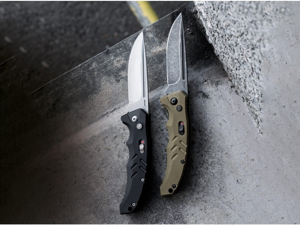 Cuțit tactic cu deschidere automată. Este potrivit nu numai pentru utilizarea tactică, ci și pentru utilizare zilnică. Apăsând butonul se eliberează lama și aceasta se deschide automat cu ajutorul unui arc. Un sistem de blocare glisant asigură cuțitul împotriva deschiderii accidentale.