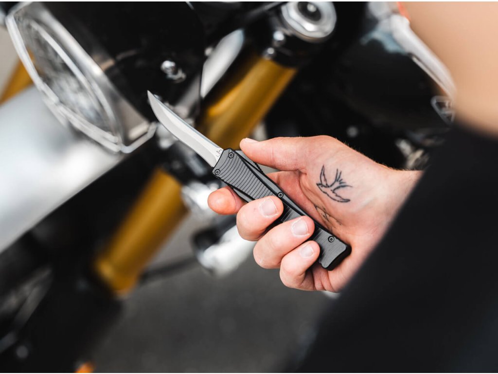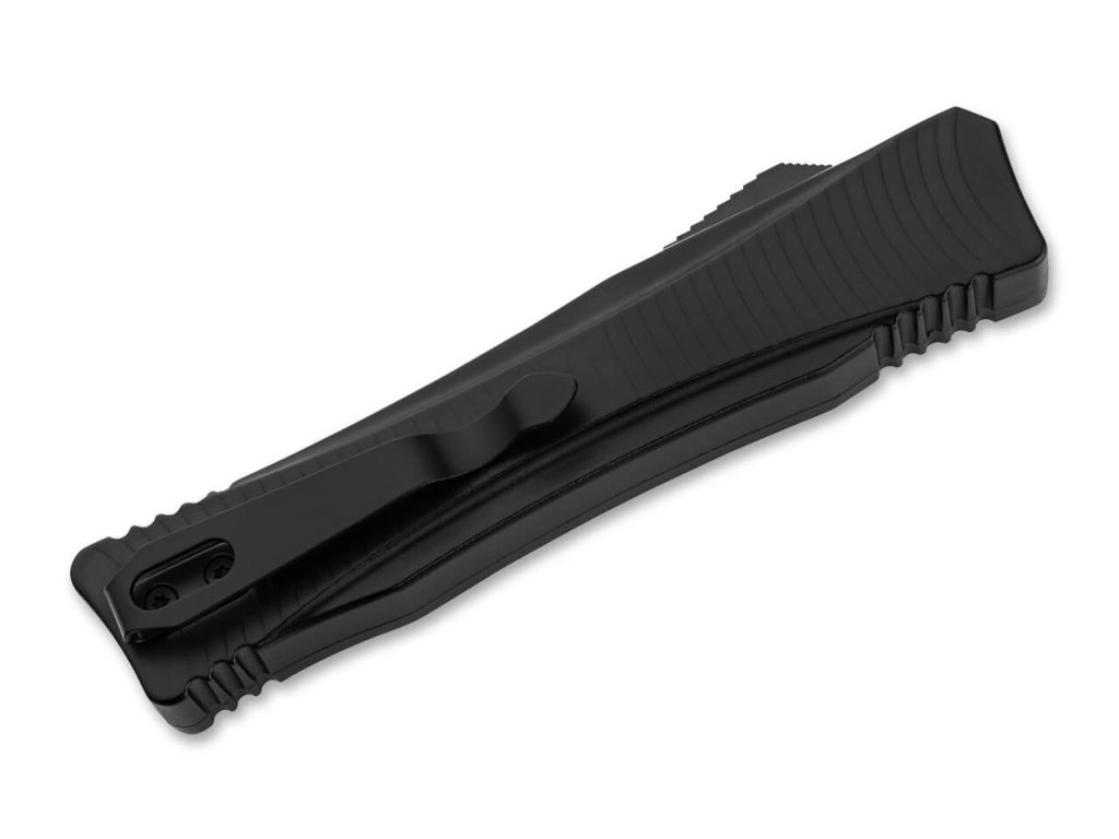 Böker Plus Eagle este un cuțit OTF proiectat de Raimund Lhotak. Cuțitul se potrivește perfect în mână datorită mânerului ergonomic din aluminiu acoperit titan. Mecanismul de deschidere și închidere a lamei funcționează pe bază de arcuri prin intermediul unui buton glisant, asigurând o utilizare rapidă. Lama de lungime 8,5 cm este fabricată din oțel pentru unelte D2, cu finisaj mat.