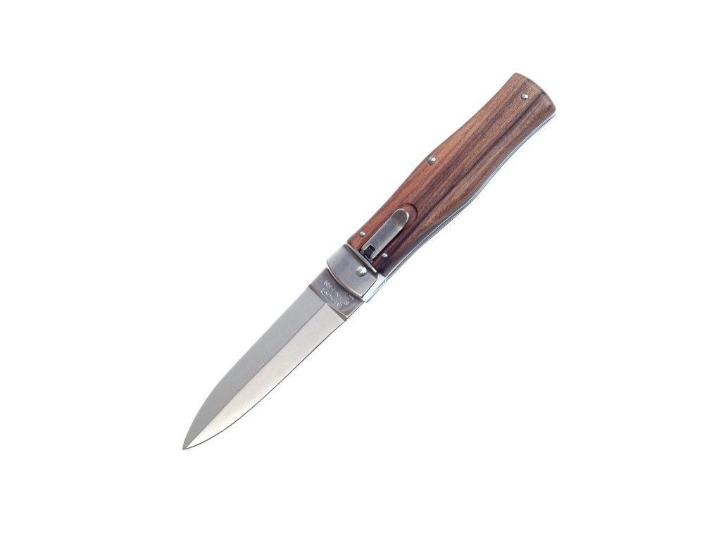 Cuțitul cu deschidere automată PREDATOR are un mâner din lemn, care are o formă ergonomică ce se potrivește perfect în mână. Cuțitul poate fi produs și într-o versiune pentru stângaci, la cerere (fără costuri suplimentare).