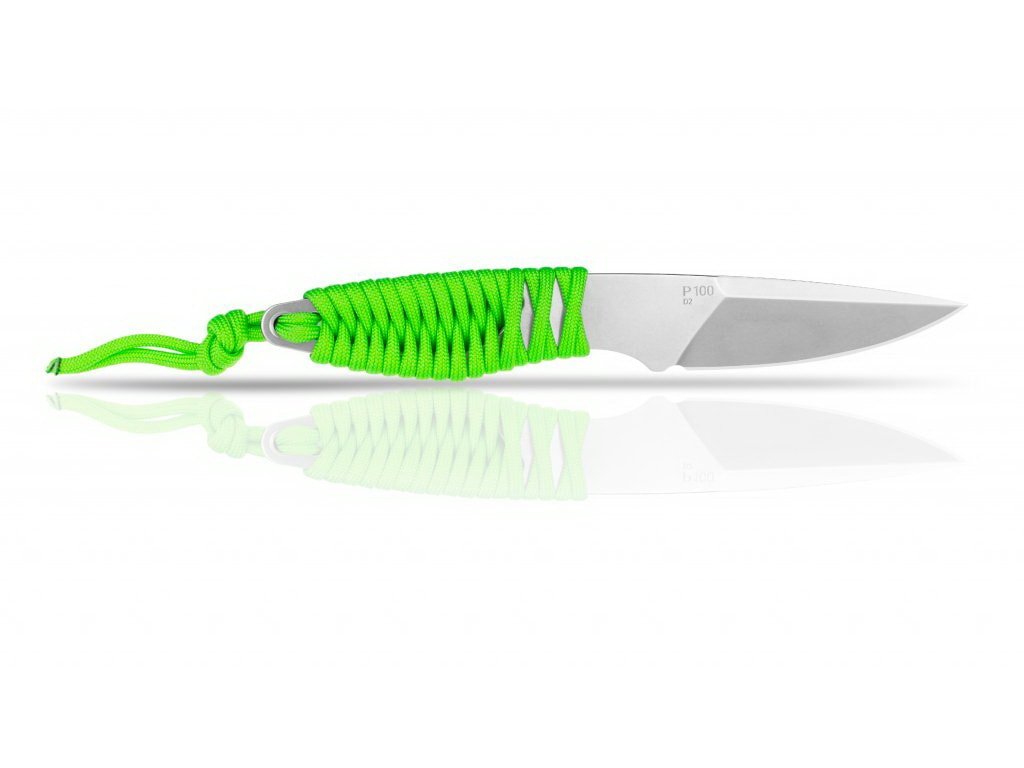 ANV P100 este un cuțit EDC (pentru uz zilnic) mic, elegant și ușor. ANV P100 este fabricat din oțel inoxidabil Bohler N690, duritate 58 HRC, care rezistă bine la uzură și este ușor de ascuțit. Cu o lungime a lamei de 7,8 cm, este perfect pentru sarcinile de zi cu zi. Mânerul este împletit din Paracord verde strălucitor cu o capacitate de 280 kg (550 lb). Teaca este fabricată din Kydex, ceea ce o face să fie foarte ușoară și extrem de rezistentă în același timp. Montarea tecii este variabilă, o puteți purta pe curea atât vertical cât și orizontal, o puteți agăța și la gât datorită lanțului de siguranță inclus. Lanțul pentru gât este fabricat din bile de oțel cu finisaj Gunmetal și se va rupe sub sarcină mare, din motive de siguranță. De asemenea, puteți roti teaca, de aceea nu contează dacă sunteți dreptaci sau stângaci. Puteți atașa teaca la un rucsac sau alt echipament, deoarece teaca este compatibilă cu sistemele MOLLE, PALS și Laser Cut. Cuțitul este livrat într-o cutie elegantă.