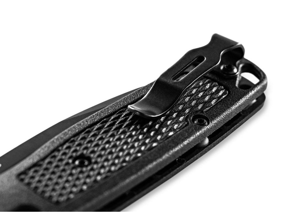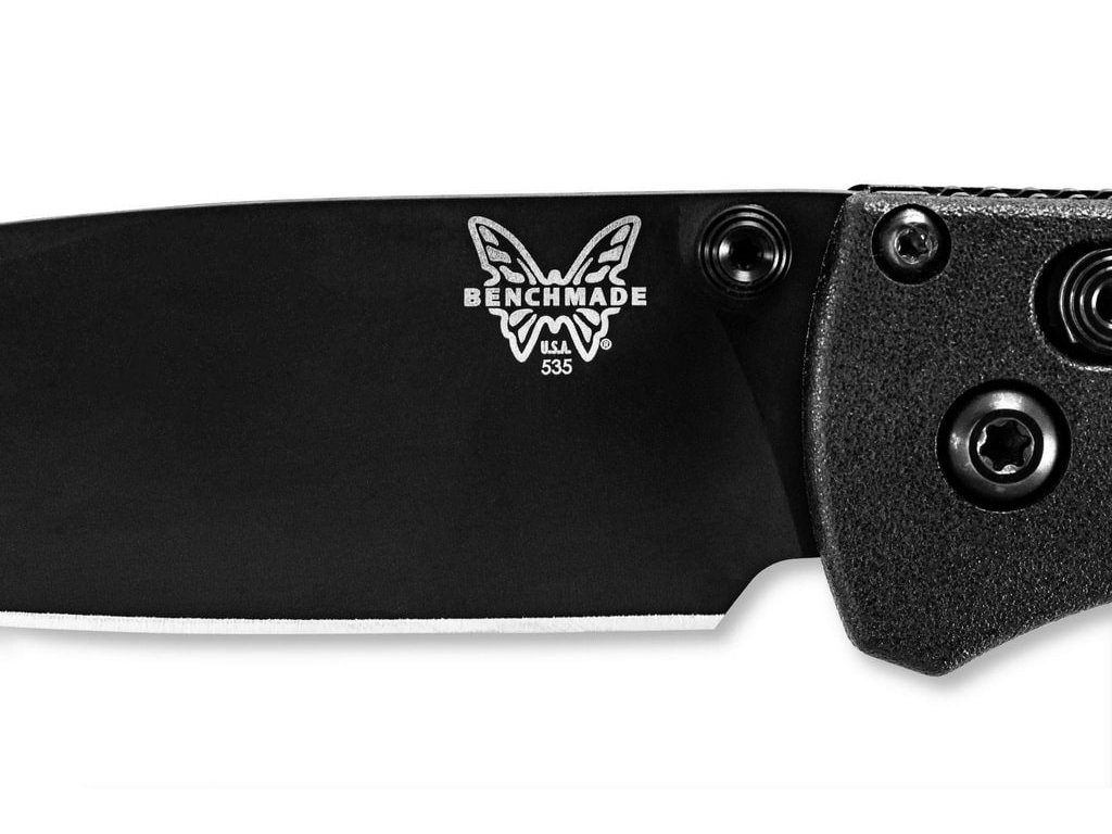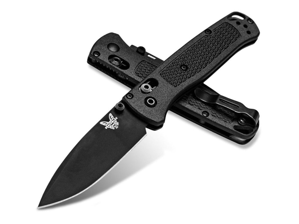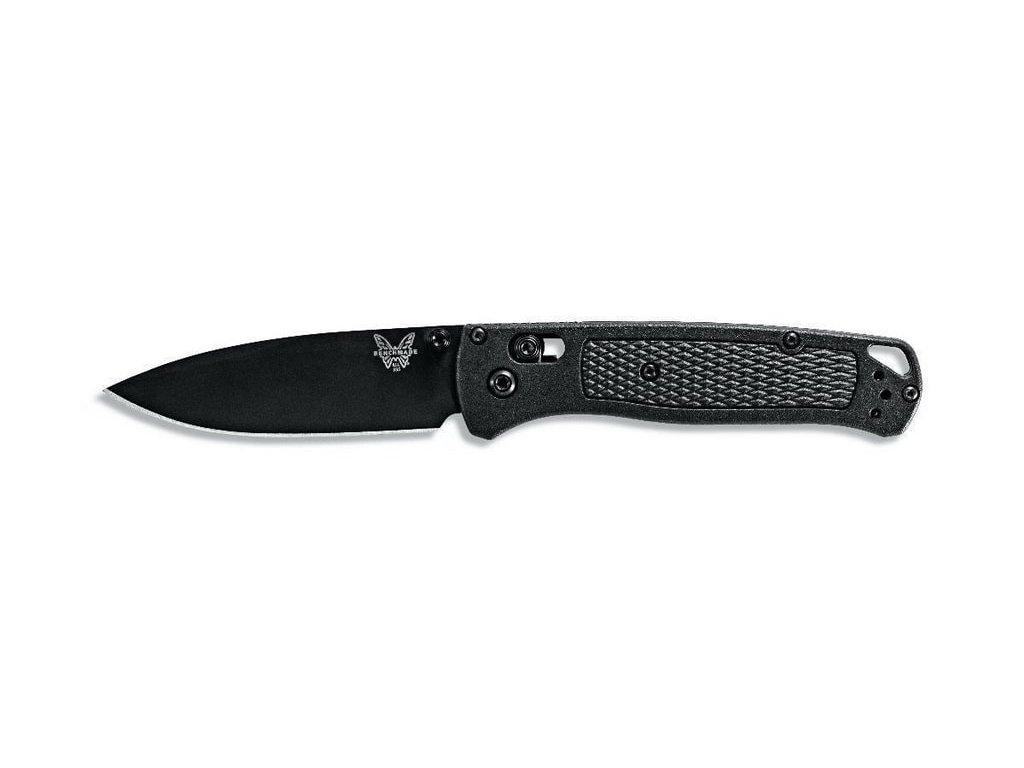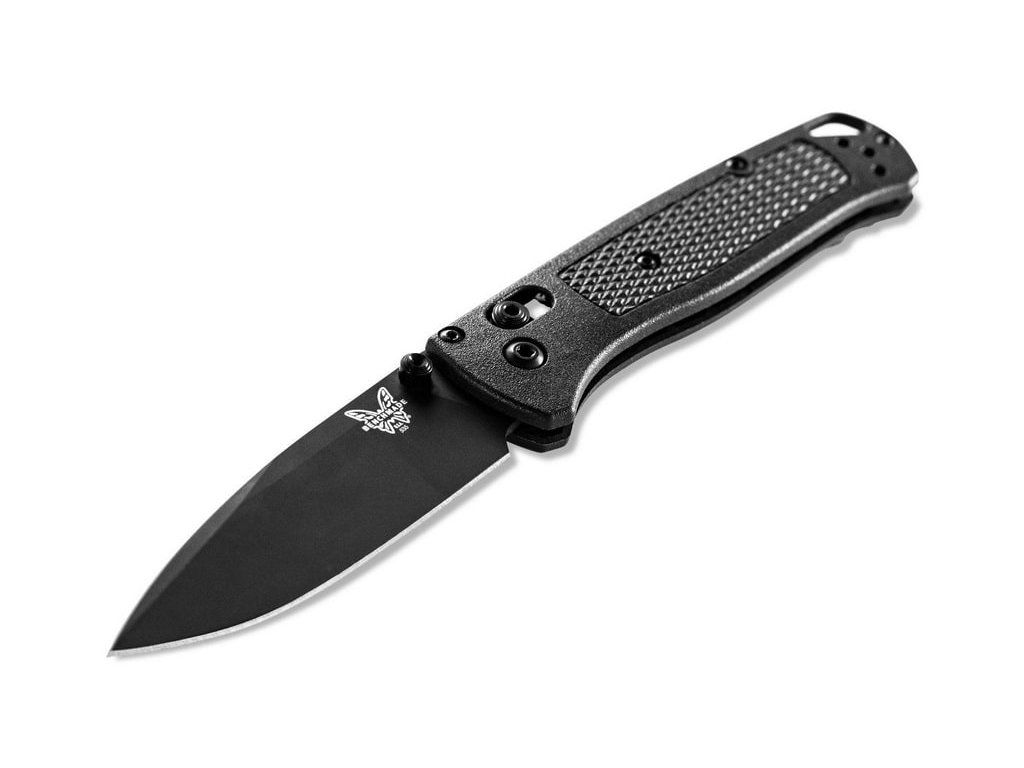 Benchmade Bugout este de mult timp unul dintre cele mai populare cuțite pliabile EDC (pentru uz zilnic). Este fabricat din materiale premium, ușor, subțire și ergonomic în același timp. Are o lamă de lungime 8,2 cm fabricată din oțel inoxidabil premium CPM S30V (duritate 58-60 HRC), finisaj mat, tăiș flat grind și formă drop point. Mâner din CF-Elite™ (un material plastic extrem de rezistent, realizat dintr-o combinație de polimeri nailon și fibră de carbon) de culoare neagră. Cuțitul are un clips care se poate fixa pe ambele părți. Cuțitul este, prin urmare, potrivit atât pentru utilizatorii dreptaci, cât și pentru stângaci. Tip de blocare a lamei Axis Lock, are un orificiul pentru șnur. Deschidere cu o singură mână prin intermediul unui știft pe lamă. Cuțitul este fabricat în SUA.