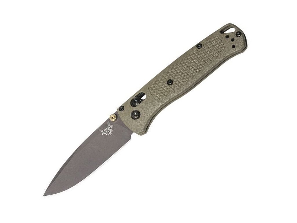 Benchmade Bugout este de mult timp unul dintre cele mai populare cuțite pliabile EDC (pentru uz zilnic). Este fabricat din materiale premium, ușor, subțire și ergonomic în același timp. Are o lamă de lungime 8,2 cm fabricată din oțel inoxidabil premium CPM S30V (duritate 58-60 HRC), finisaj mat, tăiș flat grind și formă drop point. Mâner din Grivory (un material plastic extrem de rezistent, realizat dintr-o combinație de poliamide termoplastice și rășină) de culoarea Ranger Green. Cuțitul are un clips care se poate fixa pe ambele părți. Cuțitul este, prin urmare, potrivit atât pentru utilizatorii dreptaci, cât și pentru stângaci. Tip de blocare a lamei Axis Lock, are un orificiul pentru șnur. Deschidere cu o singură mână prin intermediul unui știft pe lamă. Cuțitul este fabricat în SUA.
