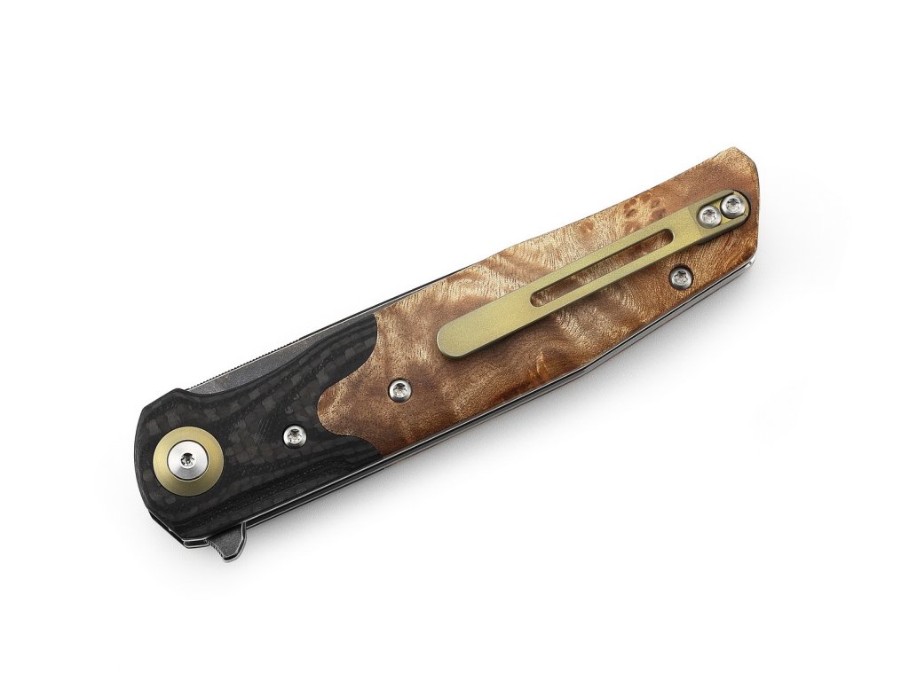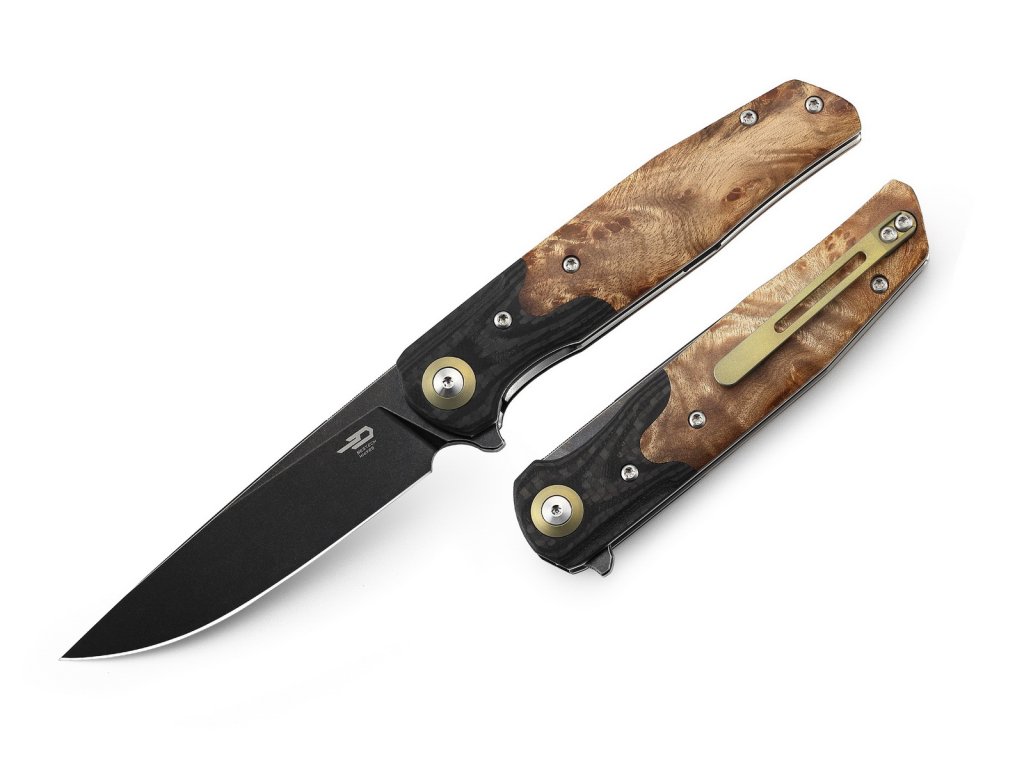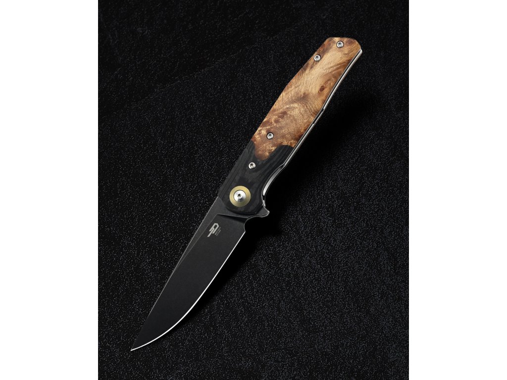 Bestech Ascot este un cuțit pliabil elegant pentru utilizare zilnică. Lama, cu formă drop point, este fabricată din oțel Sandvik 14C28N, cu tăiș tip flat grind, are o lungime de 9,7 cm și este montată pe rulmenți ceramici. Finisajul lamei este black stonewash. Mânerul este realizat dintr-o combinație de fibră de carbon și lemn. Datorită marginilor rotunjite, mânerul este foarte confortabil. Cuțitul are o blocare tip Liner Lock și o clemă de titan pentru agățare. Deschidere tip flipper.