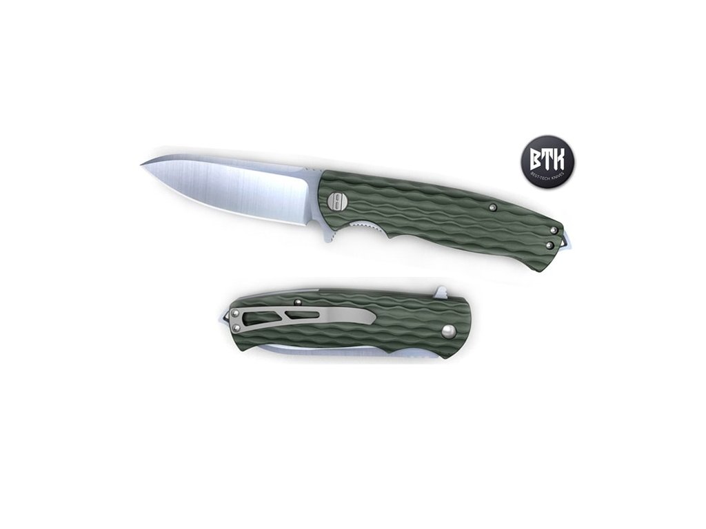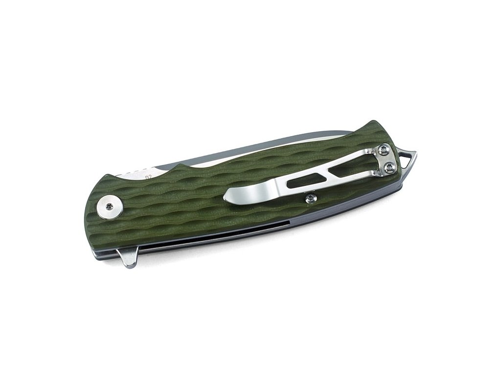 Bestech Grampus este un cuțit pliabil cu o lamă modern de dimensiuni medii, potrivit pentru utilizare zilnică. Lama din oțel pentru unelte D2 cu tăiș flat grind are o lungime de 8,8 cm și este montată pe rulmenți ceramici, ceea ce face ca deschiderea cuțitului să fie extrem de ușoară și lină. Mânerul este fabricat din G10 de culoare verde închis. Blocaj tip Liner Lock. Clemă din oțel pentru agățare.