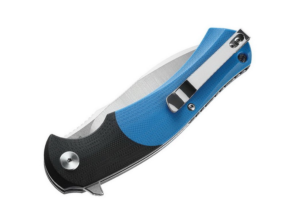 Bestech Penguin este un cuțit pliabil potrivit pentru utilizarea zilnică. Lama din oțel pentru unelte D2, cu tăiș tip flat grind, are o lungime de 9,2 cm și este montată pe rulmenți ceramici, ceea ce face deschiderea cuțitului extrem de ușoară și lină. Mâner din G10 în culori negru și albastru. Blocaj tip Liner Lock. Clemă de oțel pentru agățare. Deschidere tip flipper.