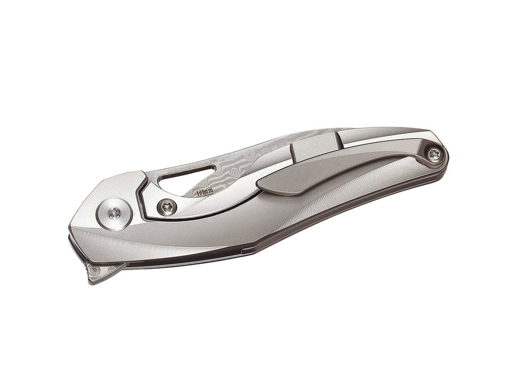 Bestech Reticulan este un mic cuțit pliabil premium EDC cu un design unic creat de Elijah Isham. Teaca din kydex îl face potrivit pentru a fi purtat la gât. Blocare tip Frame Lock, deschidere tip flipper, lamă montată pe rulmenți Ceramic. Lama cu formă drop point, lungă de 5,2 cm, cu finisaj mat, este fabricată din oțel de damasc cu un model foarte frumos și o duritate de până la 61 HRC. Atât mânerul, cât și clema sunt realizate din titan (grad 5, Ti6Al4V). Mânerul este realizat din titan anodizat de culoare gri.