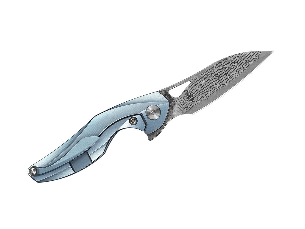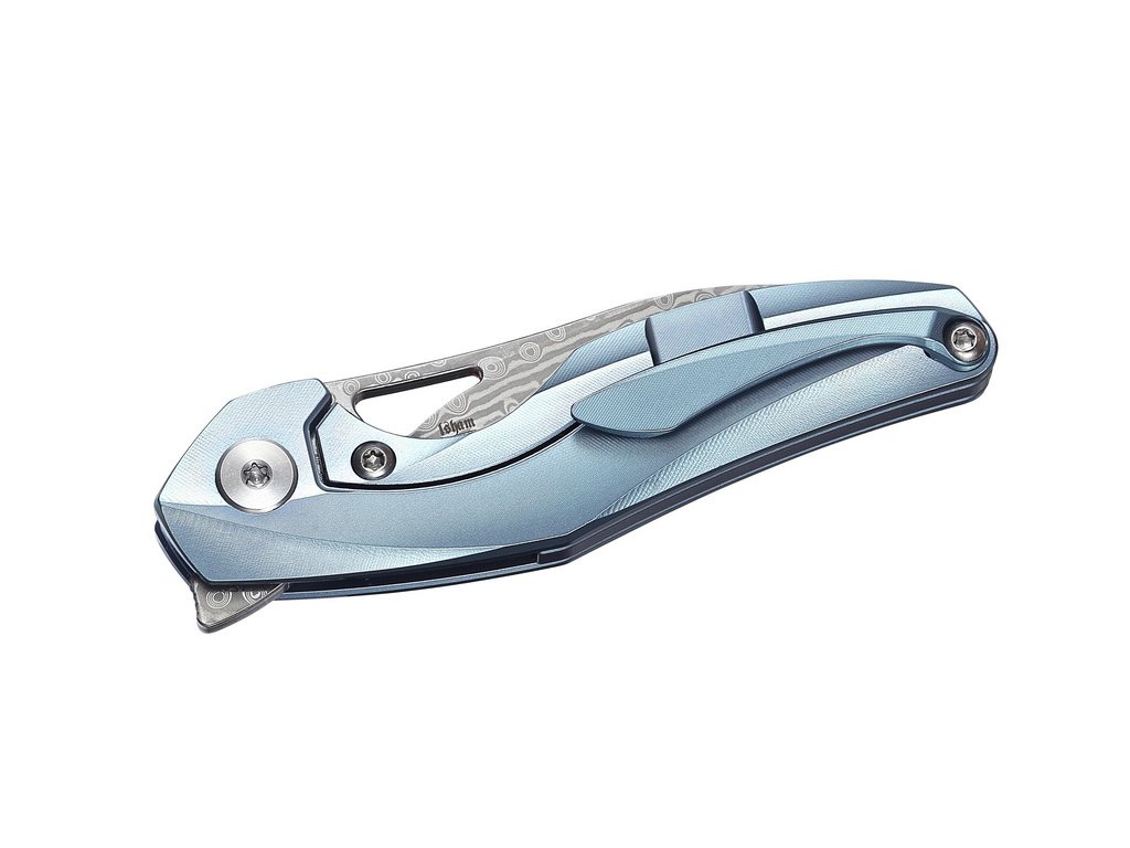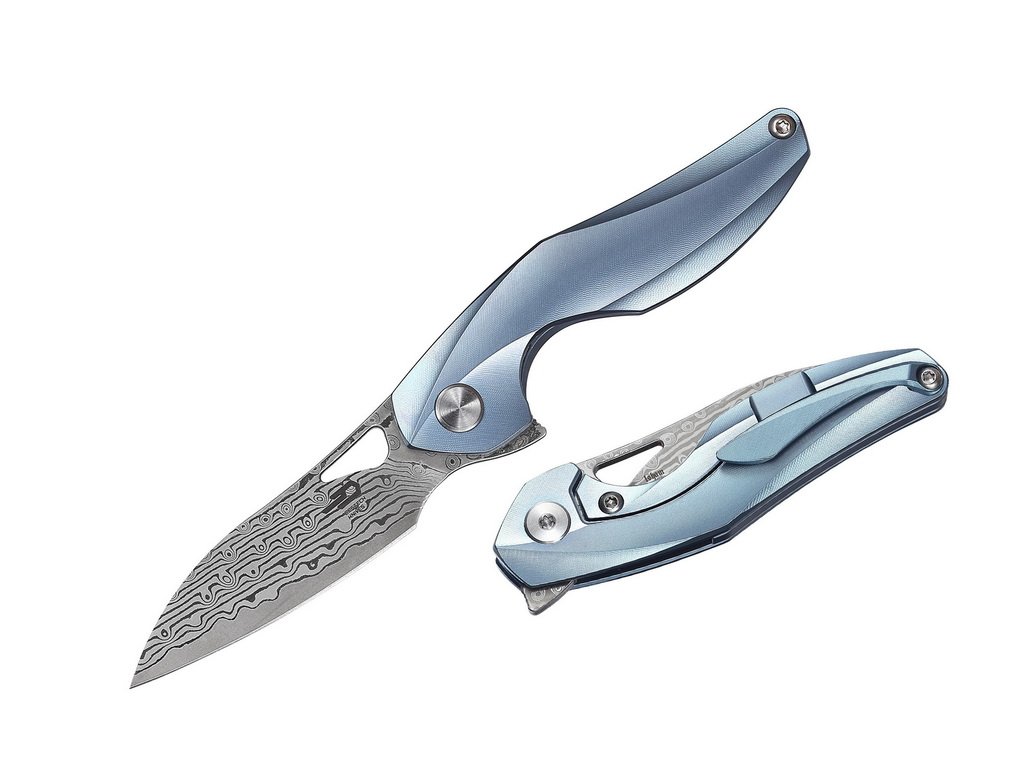Bestech Reticulan este un mic cuțit pliabil premium EDC cu un design unic creat de Elijah Isham. Teaca din kydex îl face potrivit pentru a fi purtat la gât. Blocare tip Frame Lock, deschidere tip flipper, lamă montată pe rulmenți Ceramic. Lama cu formă drop point, lungă de 5,2 cm, cu finisaj mat, este fabricată din oțel de damasc cu un model foarte frumos și o duritate de până la 61 HRC. Atât mânerul, cât și clema sunt realizate din titan (grad 5, Ti6Al4V). Mânerul este realizat din titan anodizat de culoare albastră.