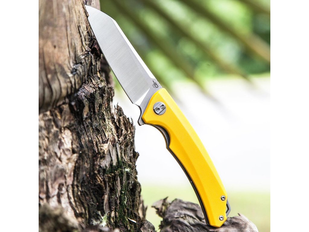 Bestech Texel este un cuțit pliabil EDC ideal pentru utilizare zilnică. Lama este fabricată din oțel pentru unelte D2, cu formă Wharncliffe, tăiș tip flat grind și are o lungime de 8,2 cm. Are un finisaj mat combinat cu un finisaj stonewash. Așa cum se obișnuiește la Bestech, lama este montată pe rulmenți ceramici, ceea ce face ca deschiderea cuțitului să fie foarte ușoară și lină. Mânerul este fabricat din G10 de culoare galbenă. Blocare tip Liner Lock. Clemă de oțel pentru agățare. Deschidere tip flipper.