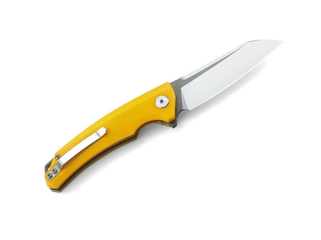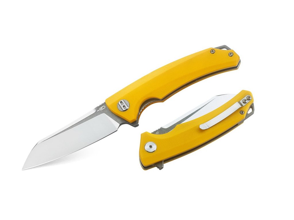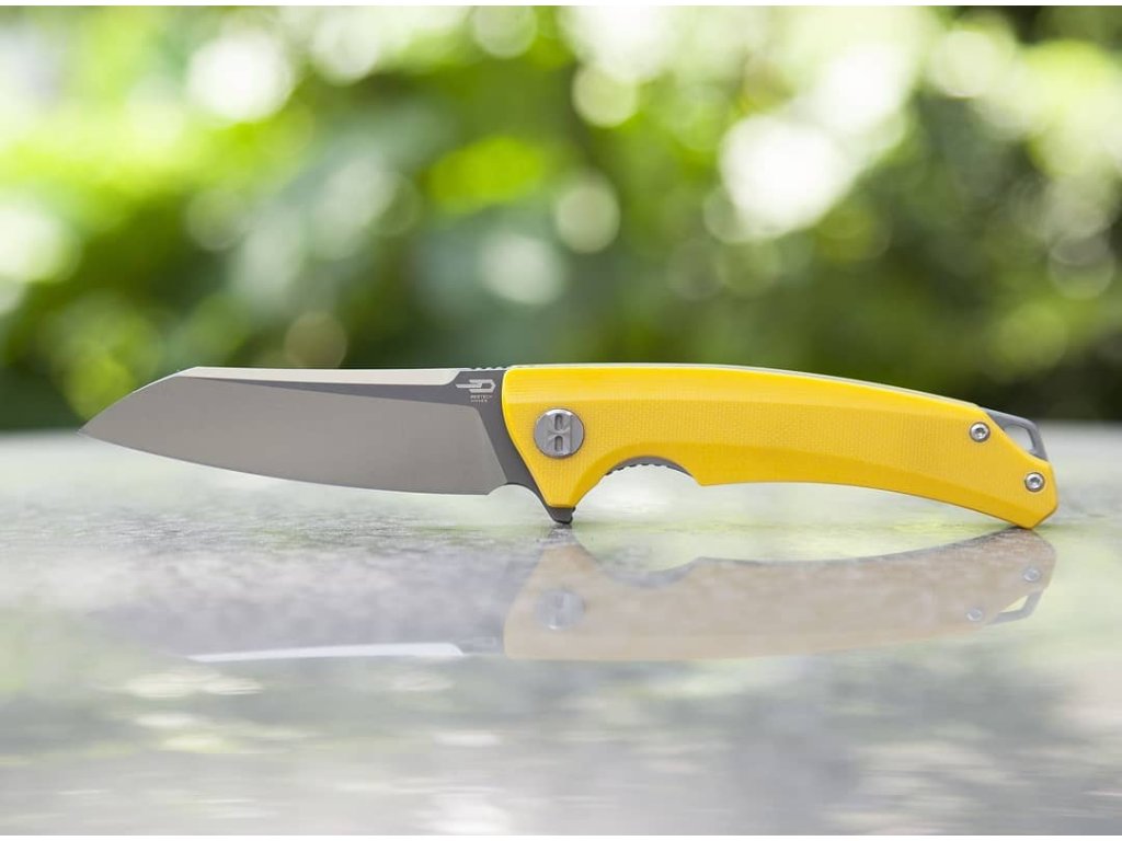 Bestech Texel este un cuțit pliabil EDC ideal pentru utilizare zilnică. Lama este fabricată din oțel pentru unelte D2, cu formă Wharncliffe, tăiș tip flat grind și are o lungime de 8,2 cm. Are un finisaj mat combinat cu un finisaj din titan gri. Așa cum se obișnuiește la Bestech, lama este montată pe rulmenți ceramici, ceea ce face ca deschiderea cuțitului să fie foarte ușoară și lină. Mânerul este fabricat din G10 de culoare galbenă. Blocare tip Liner Lock. Clemă de oțel pentru agățare. Deschidere tip flipper.
