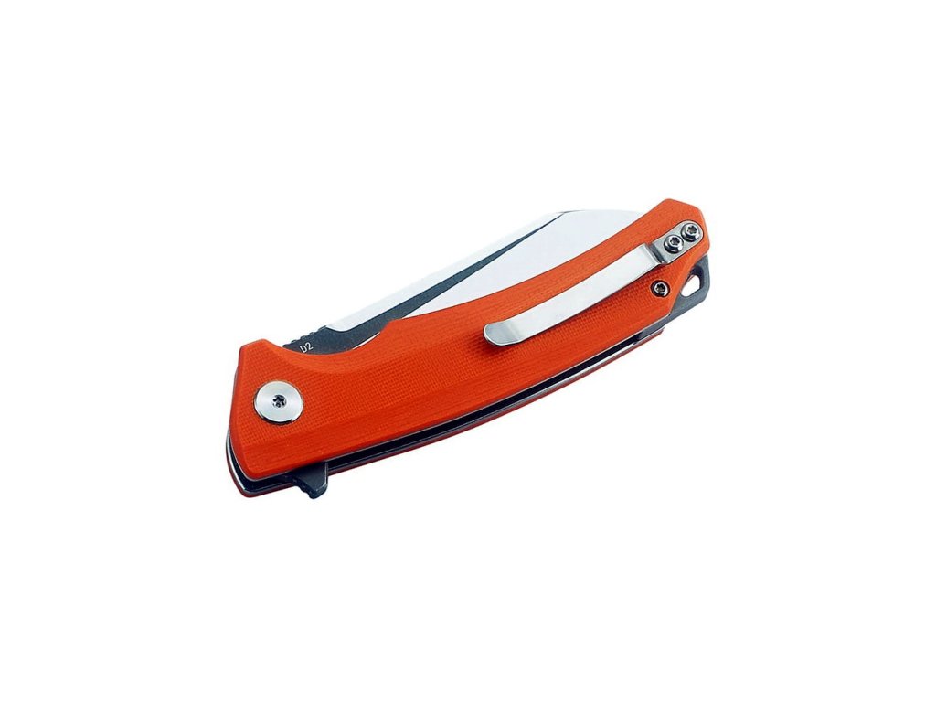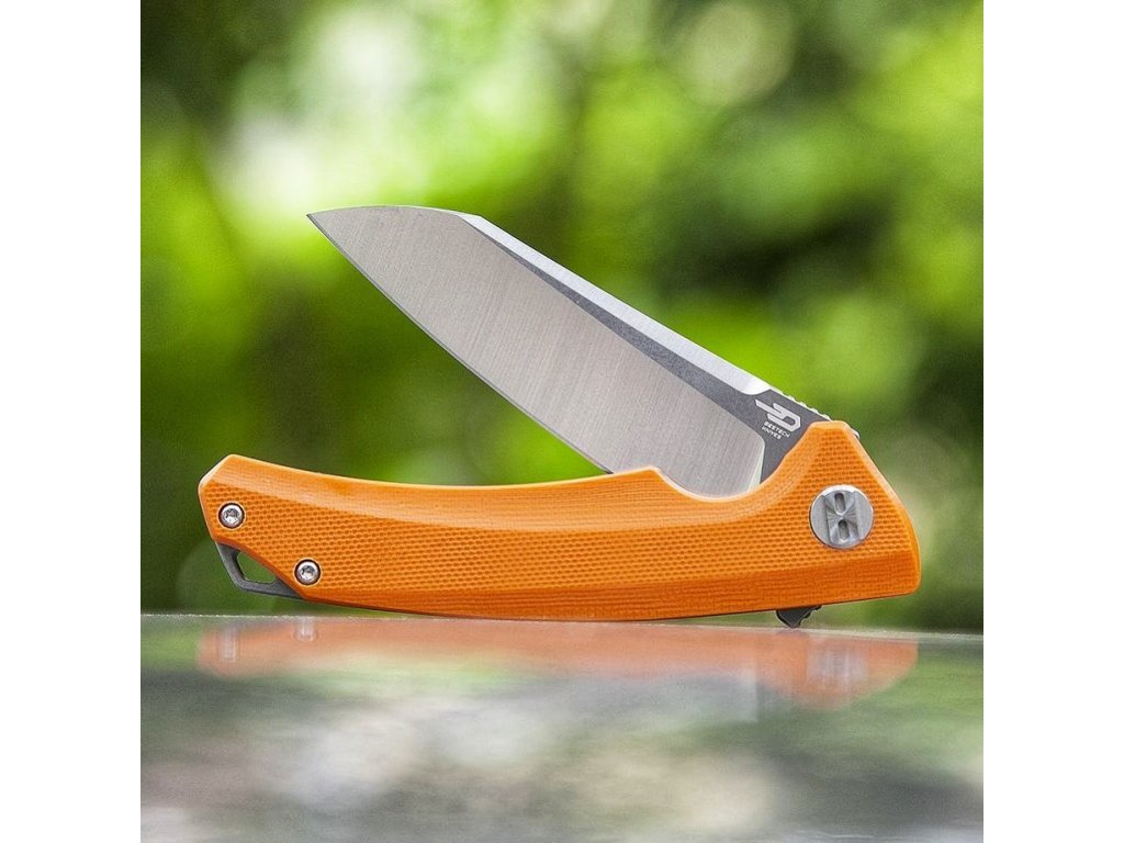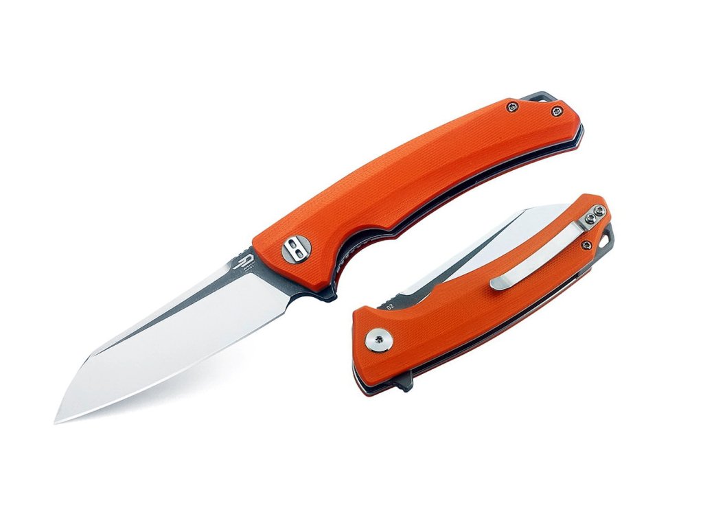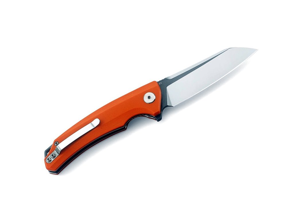 Bestech Texel este un cuțit pliabil EDC ideal pentru utilizare zilnică. Lama este fabricată din oțel pentru unelte D2, cu formă Wharncliffe, tăiș tip flat grind și are o lungime de 8,2 cm. Are un finisaj mat combinat cu un finisaj din titan gri. Așa cum se obișnuiește la Bestech, lama este montată pe rulmenți ceramici, ceea ce face ca deschiderea cuțitului să fie foarte ușoară și lină. Mânerul este fabricat din G10 de culoare portocalie. Blocare tip Liner Lock. Clemă de oțel pentru agățare. Deschidere tip flipper.