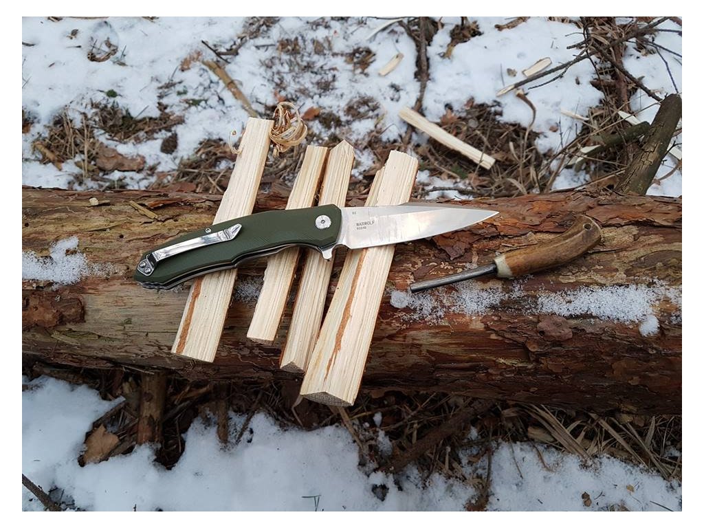 Bestech Warwolf este un cuțit pliabil pentru utilizarea zilnică, cu o lamă e formă spear point și un vârf ascuțit. Lama din oțel pentru unelte D2, cu tăiș flat grind, are o lungime de 9,5 cm și este montată pe rulmenți ceramici, ceea ce face ca deschiderea cuțitului să fie extrem de ușoară și lină. Mânerul este fabricat din G10 de culoare verde închis. Blocare tip Liner Lock. Clemă din oțel pentru agățare. Deschidere tip flipper.
