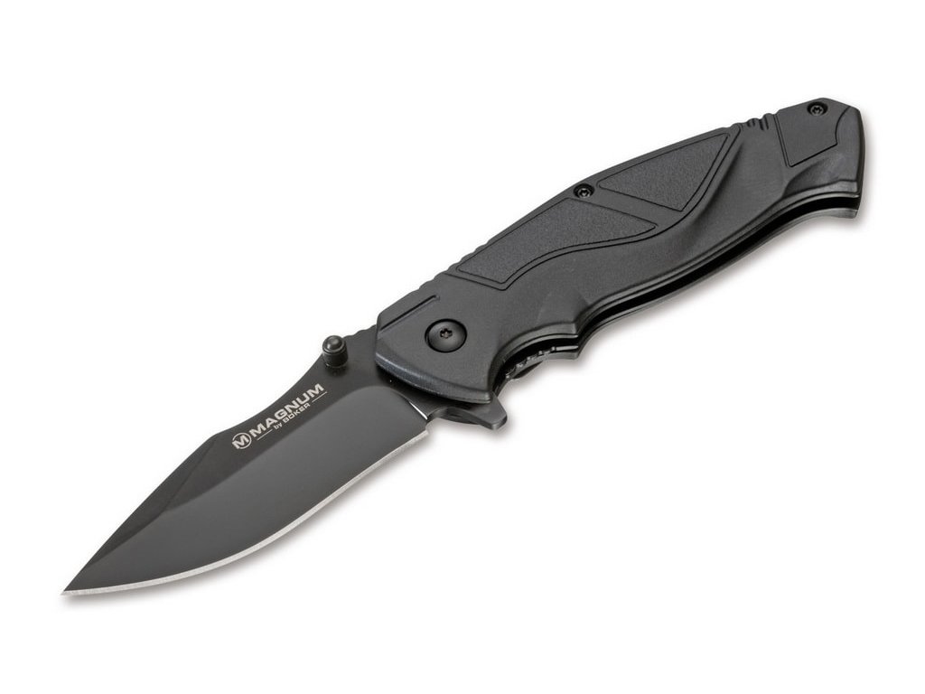 Böker Magnum Advance Pro este un cuțit tactic pliabil cu un raport calitate/preț excelent. Lama fabricată din oțel 440C are o lungime de 8 cm, cu finisaj negru. Mânerul este fabricat din plastic rezistent și durabil. Cuțitul poate fi deschis cu o singură mână folosind știftul pentru deschidere sau cu ajutorul flipperului. Blocare tip liner lock, clemă pentru agățare. Cuțitul este livrat cu o teacă din nailon rezistent.
