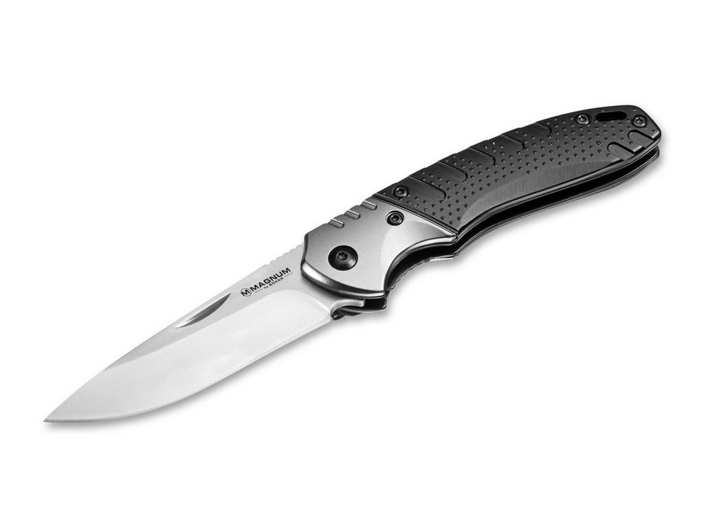 Böker Magnum Advance Pro este un cuțit pliabil pentru utilizare zilnică cu un raport calitate/preț excelent. Lama fabricată din oțel 440C are o lungime de 7,5 cm, cu finisaj mat. Mânerul este fabricat din plastic rezistent, în combinație cu aluminiu. Cuțitul are o deschidere clasică și nu poate fi deschis cu o singură mână. Blocare tip liner lock, clemă pentru agățare. Cuțitul este livrat cu o teacă din nailon rezistent.