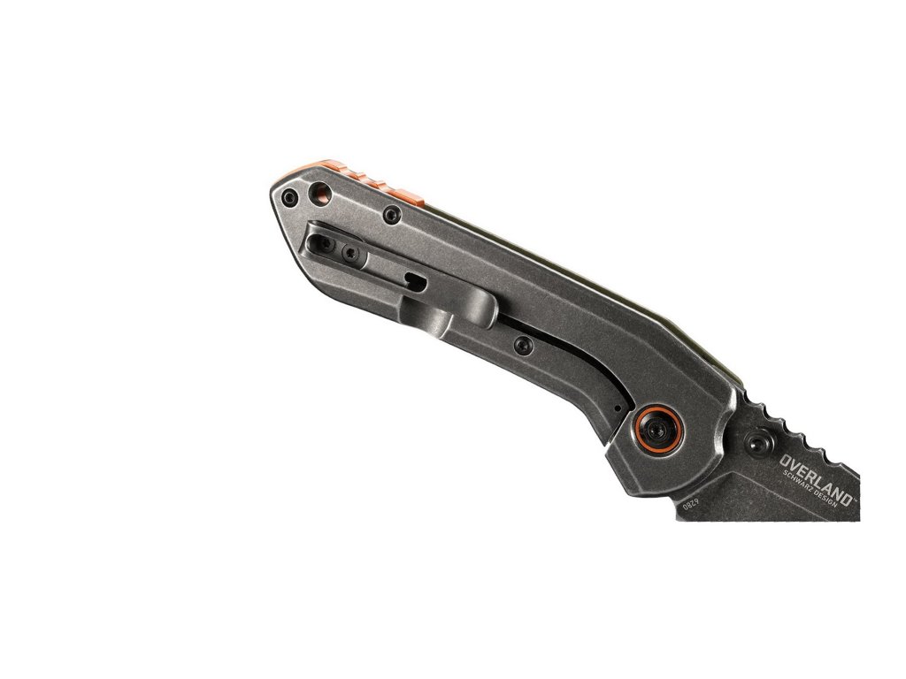 CRKT Overland este un partener elegant pentru activități în aer liber și purtare zilnică. Lama, de lungime 7,7 cm, este fabricată din oțel 8Cr13MoV, are un finisaj stonewash și o formă sheepsfoot. Deschidere cu o singură mână cu un știft pe lamă. Mâner combinat - o parte din G10 verde, cealaltă parte din oțel inoxidabil 2Cr13. Blocare a lamei tip Frame Lock. Clemă de oțel pentru agățare.