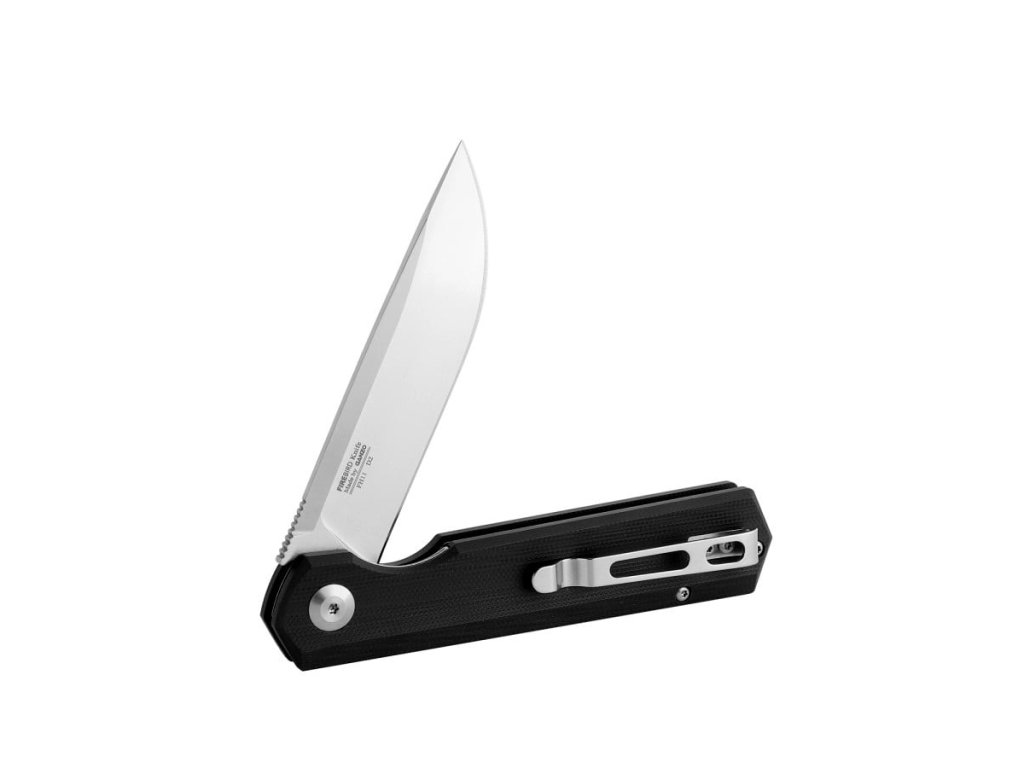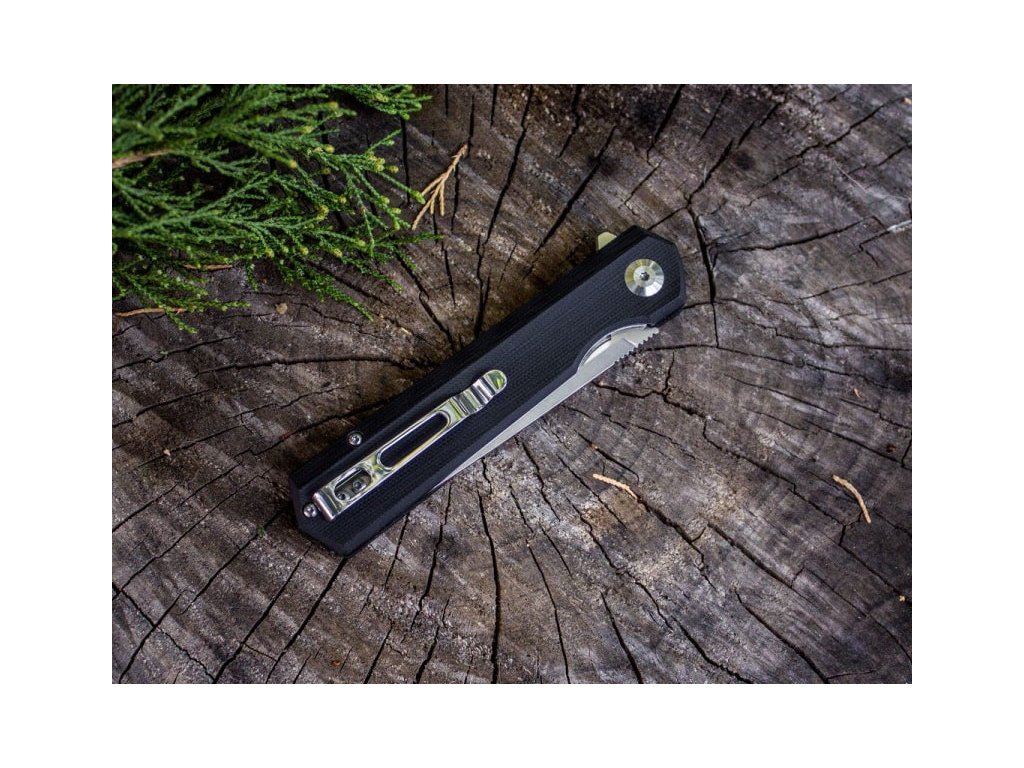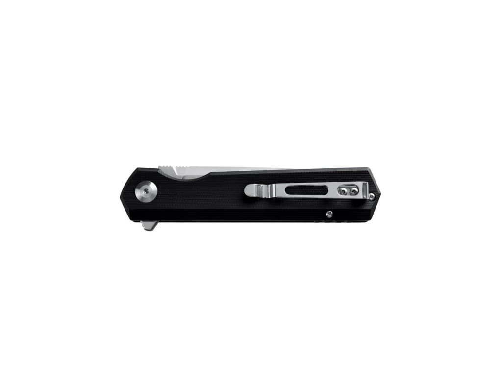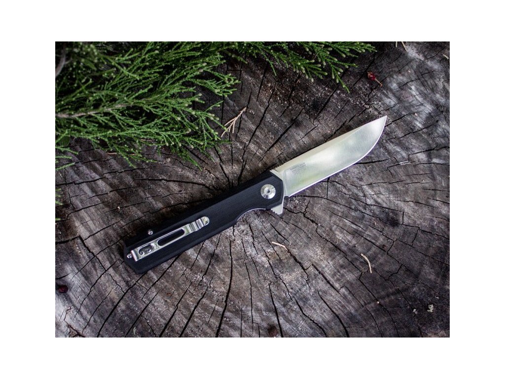 Cuțit pliabil cu un design foarte atractiv. Mânerul din G10 negru oferă cuțitului nu numai un aspect frumos, ci și o prindere confortabilă. Lama lungă de 8,7 cm este fabricată din oțel D2 pentru unelte, are un tăiș flat grind, și este montată pe rulmenți. Lama are un finisaj mat și o formă drop point. Datorită clemei care se poate monta pe ambele părți, cuțitul este potrivit și pentru stângaci. Deschidere cu ajutorul unui flipper, blocare a lamei liner lock. O alegere excelentă pentru utilizare zilnică, fie în natură, fie în oraș.
