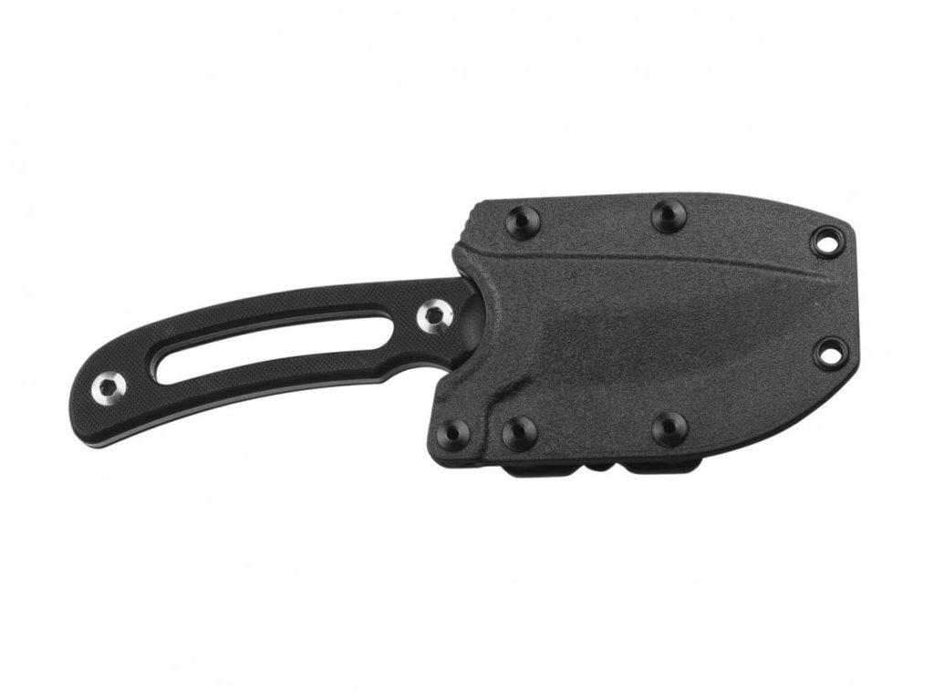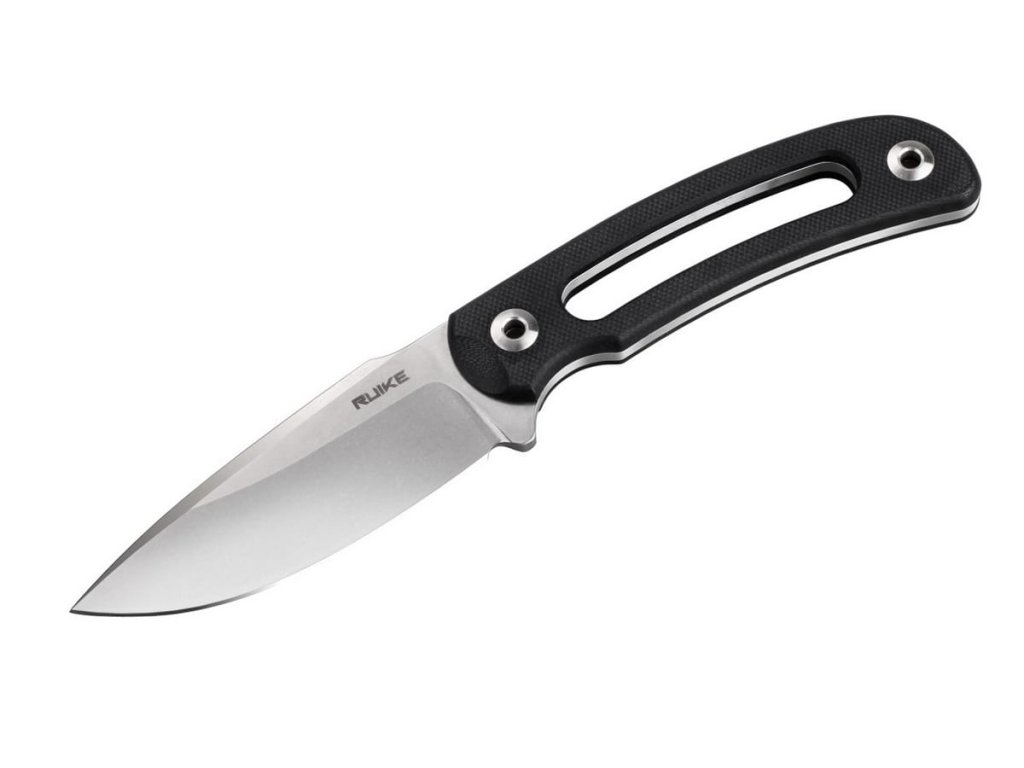 Ruike Hornet este un cuțit cu lama fixă și cu un design foarte interesant și funcțional. Mânerul ușor, din G10, negru, nu numai că reduce semnificativ greutatea cuțitului, dar oferă și o prindere confortabilă. Lama de 8,5 cm din oțel Sandvik 14C28N, care a fost supusă unui tratament criogenic, face față cu ușurință tuturor sarcinilor obișnuite. Lama are un finisaj stonewash. Teaca neagră, din plastic ABS, este echipată cu o clemă rotativă, datorită căreia cuțitul poate fi purtat orizontal, vertical sau sub orice unghi.