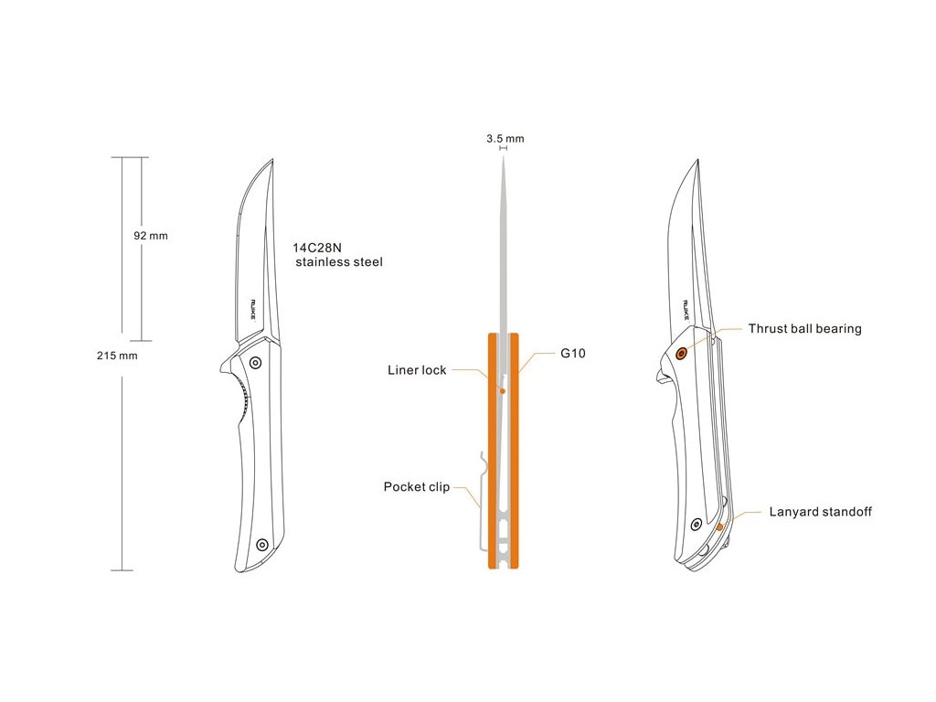 Cuțit EDC pliabil, potrivit pentru utilizare zilnică. Lama din oțel inoxidabil Sandvik 14C28N cu tratament criogenic are o lungime de 9,2 cm. Lama are un finisaj mat și este montată pe rulmenți, ceea ce face ca deschiderea cuțitului să fie foarte ușoară. Mâner din G10, negru. Cuțitul este prevăzut cu un sistem de blocare a lamei de tip liner lock și o clemă de prindere din oțel. Deschidere cu ajutorul unui flipper - cuțitul se deschide ușor cu un singur deget.