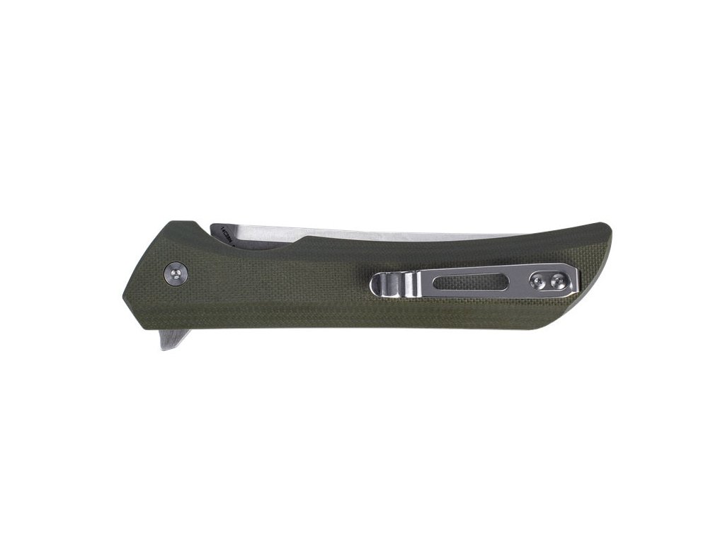 Cuțit EDC pliabil, potrivit pentru utilizare zilnică. Lama din oțel inoxidabil Sandvik 14C28N cu tratament criogenic are o lungime de 9,2 cm și un tăiș flat grind. Lama are un finisaj mat și este montată pe rulmenți, ceea ce face ca deschiderea cuțitului să fie foarte ușoară. Mâner din G10, verde. Cuțitul este prevăzut cu un sistem de blocare a lamei de tip liner lock și o clemă de prindere din oțel. Deschidere cu ajutorul unui flipper - cuțitul se deschide ușor cu un singur deget.